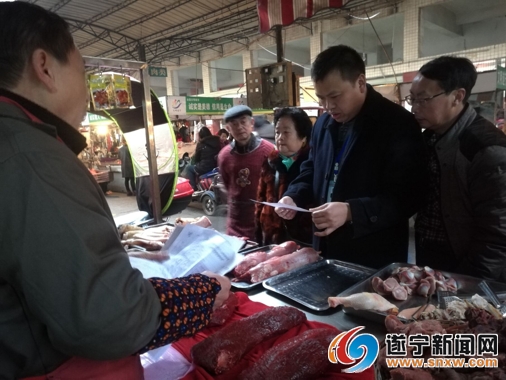 随后,检查组来到船山区动物卫生监督所驻高金公司检疫办公室,现场了解该厂的生猪收购、屠宰检疫等情况,并查看“瘦肉精”检测登记表,情况较好。此后,检查组还来到了南大食品责任有限公司,查看了市级储备肉的储备情况,要求企业要落实主体责任,建立完善相关制度,严禁从省外调进生猪及生猪产品,做到严格管理,确保我市肉制品安全。