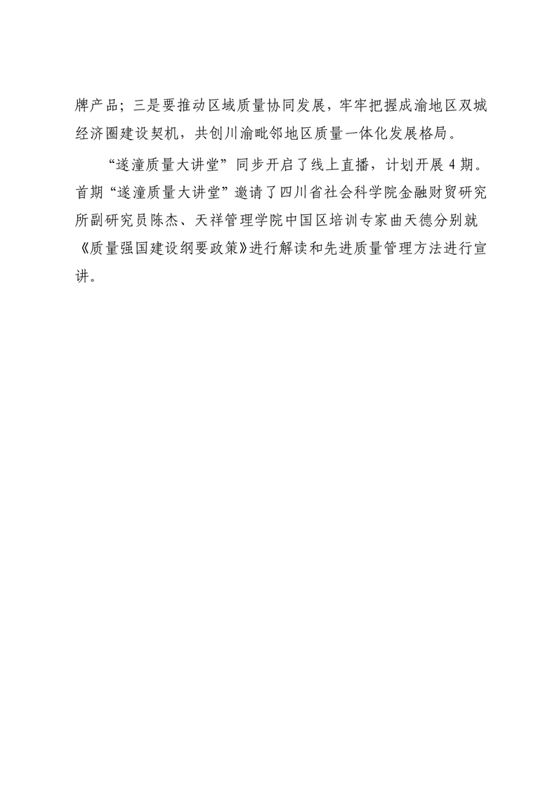遂宁市举办“遂潼质量大讲堂”开班仪式暨第一期培训会
