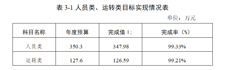 2023年度,市乡村振兴局人员类年初预算为350.30万元、完成值为347.98万元,完成率99.33%;运转类年初预算为127.6万元、完成值为126.59万元,完成率99.21%。具体情况详见表3-1。