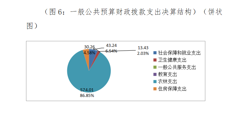 2023年度一般公共预算财政拨款支出660.93万元,主要用于以下方面:一般公共服务支出0万元,占0%;教育支出0万元,占0%;科学技术支出0万元,占0%;文化旅游体育与传媒支出0万元,占0%;社会保障和就业支出43.24万元,占6.54%;卫生健康支出13.43万元,占2.03%;住房保障支出30.26万元,占4.58%;农林水支出574.01万元,占比86.85%。