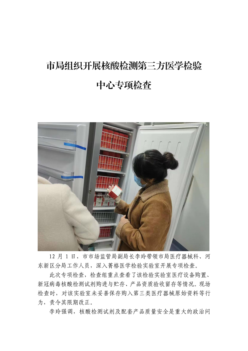 市局组织开展核酸检测第三方医学检验中心专项检查