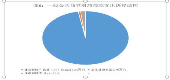2022年一般公共预算财政拨款支出326.20万元,主要用于以下方面:社会保障和就业支出317.56万元,占97.35%;卫生健康支出2.79万元,占0.86%;住房保障支出5.85万元,占1.79%。