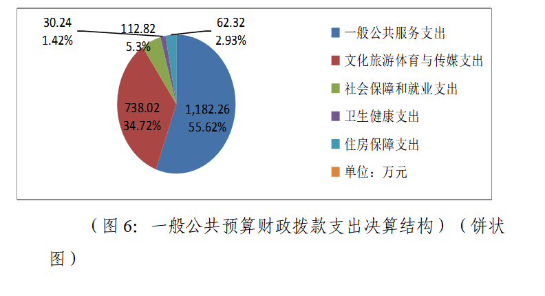 2024年度一般公共预算财政拨款支出2125.66万元,主要用于以下方面:一般公共服务支出1182.26万元,占55.62%;文化旅游体育与传媒支出738.02万元,占34.72%;社会保障和就业支出112.82万元,占5.3%;卫生健康支出30.24万元,占1.42%;住房保障支出62.32万元,占2.93%。