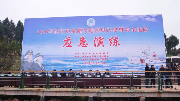为检验遂宁市水上人员救助、消防灭火和水域环境污染处置的应急能力,保障人民群众生命财产安全,由遂宁市地方海事局主办,安居区交通运输局和安居区地方海事处承办的水路交通环境污染暨安全抢险应急演练正在这里举行。