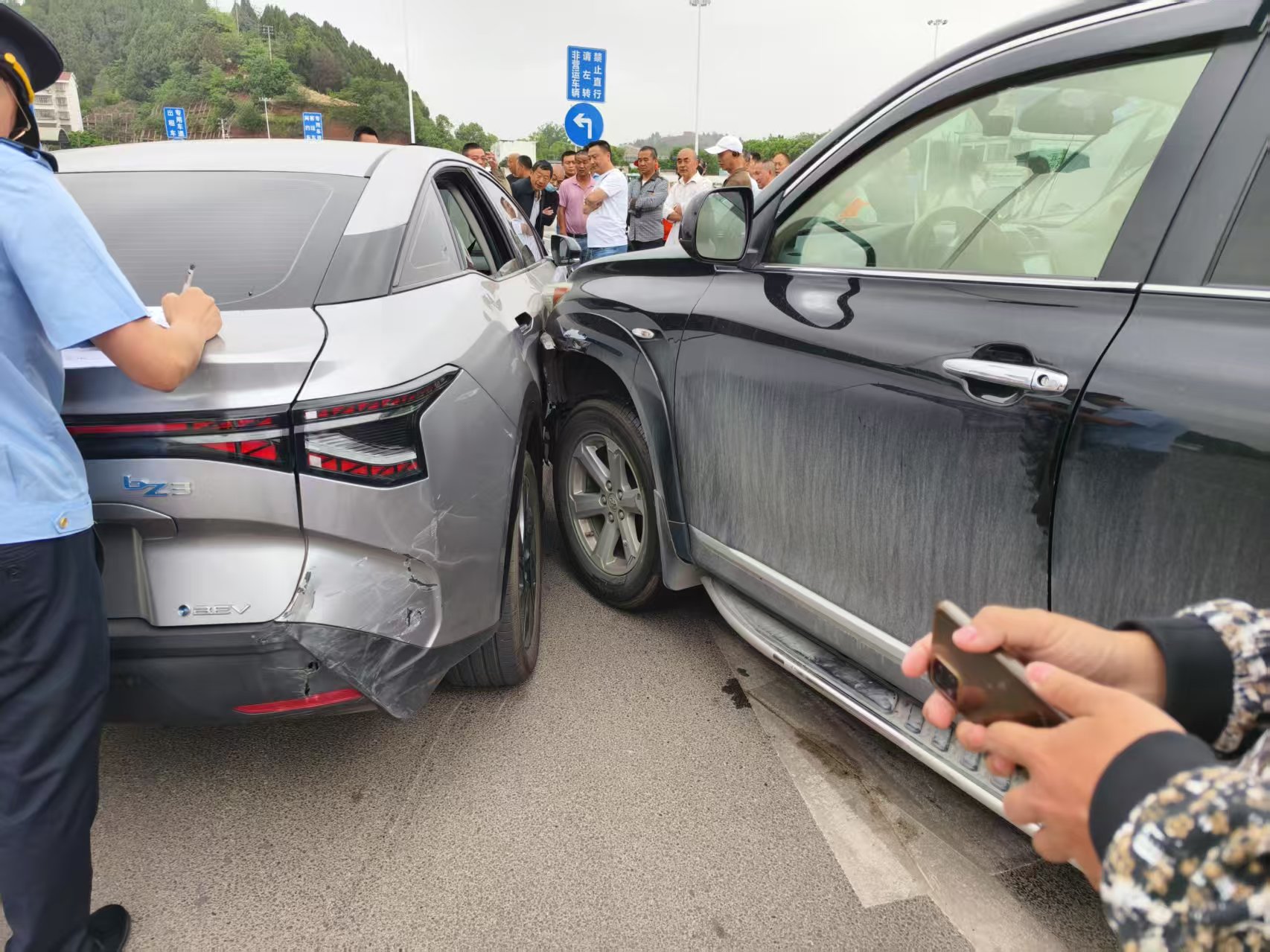 近日,遂宁市交通运输综合行政执法支队驻遂宁经开区大队执法人员在遂宁火车站附近开展路检路查时,发现一辆川APxxxx黑色丰田牌越野车存在载客行为,涉嫌非法营运。执法人员随即上前准备检查,然而,驾驶员范某在看到执法车辆靠近后,不顾车上乘客正打开车门下车的情况,径直向停靠的执法车辆撞去,企图借此逃避检查,导致现场2辆执法车辆和1辆社会车辆受损。