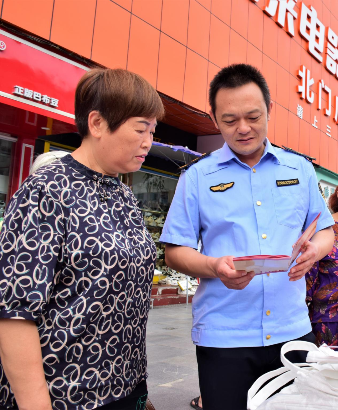 “阿姨,以后买什么产品都要先看看质量,如果有问题可以拨打12315、12345进行反映……”