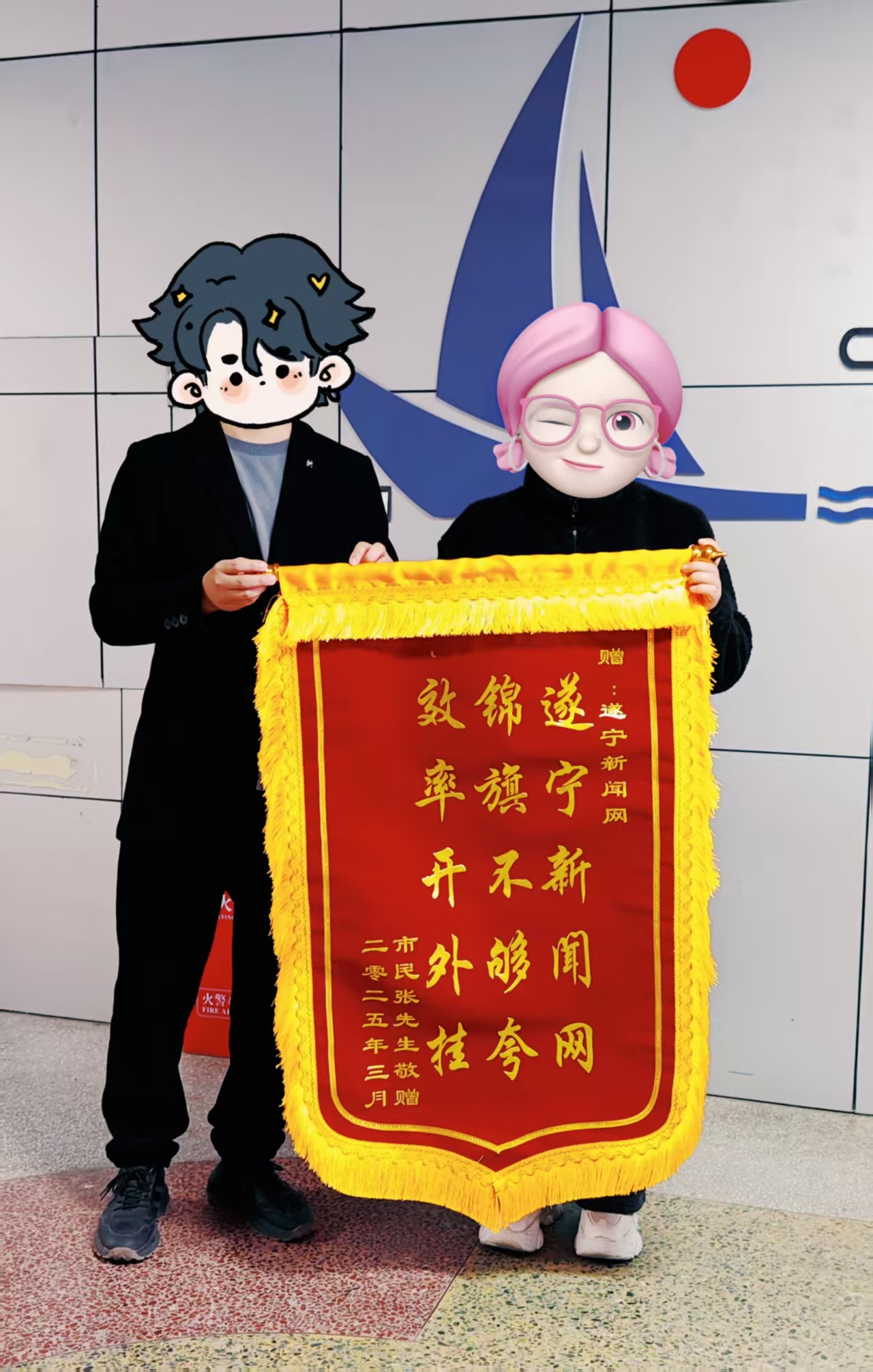 为表谢意,张先生特意送来一面写有“遂宁新闻网,锦旗不够夸,效率开外挂”的创意锦旗。“原本以为找钥匙是大海捞针,没想到官媒抖音号真正将老百姓的急难愁盼放在心上,落实在行动上,体现在效率上。”张先生说。
