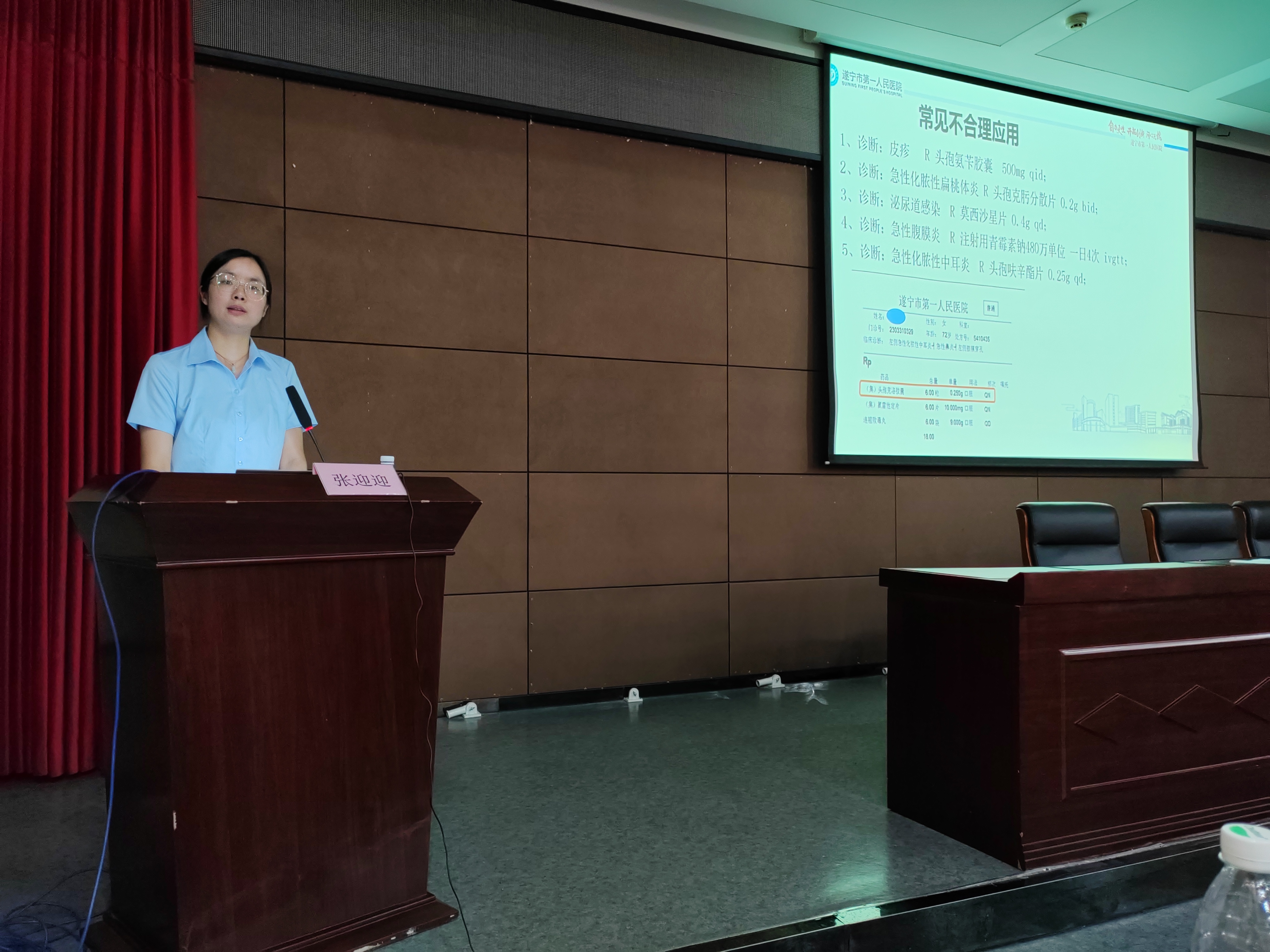 随后,遂宁市第一人民医院重症医学专科临床药师张迎迎老师结合自身工作实际、以临床实际案例为切入点,深入讲解抗菌药物的分类、特性,从抗菌药物临床应用和规范化管理等方面解读医疗机构抗菌药物的使用管理相关政策与要求,进一步提升参会人员对抗菌药物的认识。