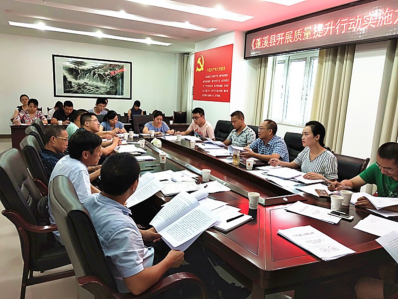 7月18日,蓬溪县质量强县工作领导小组办公室组织召开蓬溪县2018年质量工作联席会暨《蓬溪县质量提升行动实施方案(草案)》研讨会。会议由县质强办副主任张世桥主持,县经信、工商质监、住建、交运、水务、环保等相关部门分管领导及经办人员参加。