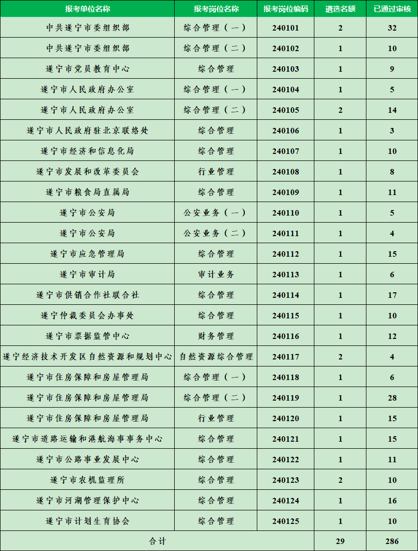 2024年遂宁市市直机关公开遴选公务员报名情况统计(截至2024年5月22日18:00,最后一次公布)