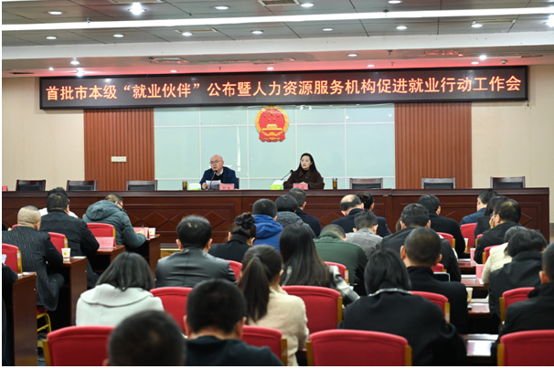 11月19日,市本级首批“就业伙伴”公布暨人力资源服务机构加力促就业行动工作会在市就业创业服务中心召开。会议由市就业局局长喻瑶主持。市人社局党组副书记、市农服中心主任程康参加会议并讲话。会议宣布了市本级首批6家“就业伙伴”, “就业伙伴”代表围绕如何开展促进就业工作发言,市就业局推介了人力资源服务机构促就业合作事项机会清单。