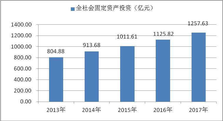 全年完成全社会固定资产投资1257.63亿元,增长11.7%。其中,基础设施投资463.79亿元,增长10.5%;更新改造投资323.16亿元,增长9.4%。分产业看,第一产业完成投资69.86亿元,占全社会固定资产投资的比重5.6%,增长48.4%;第二产业完成投资377.88亿元,占全社会固定资产投资的比重30.0%,增长26.8%,其中工业投资374.08亿元,增长26.2%;第三产业完成投资809.89亿元,占全社会固定资产投资的比重64.4%,增长3.7%。