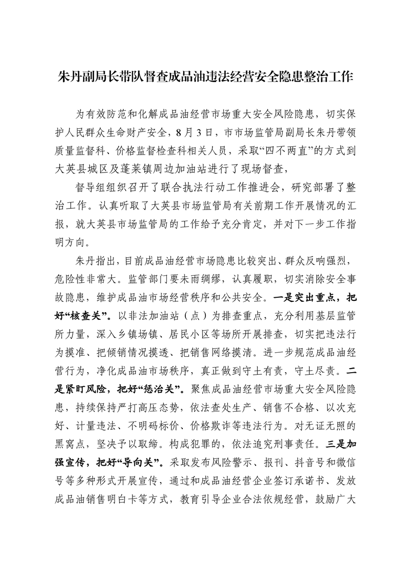 朱丹副局长带队督查成品油违法经营安全隐患整治工作