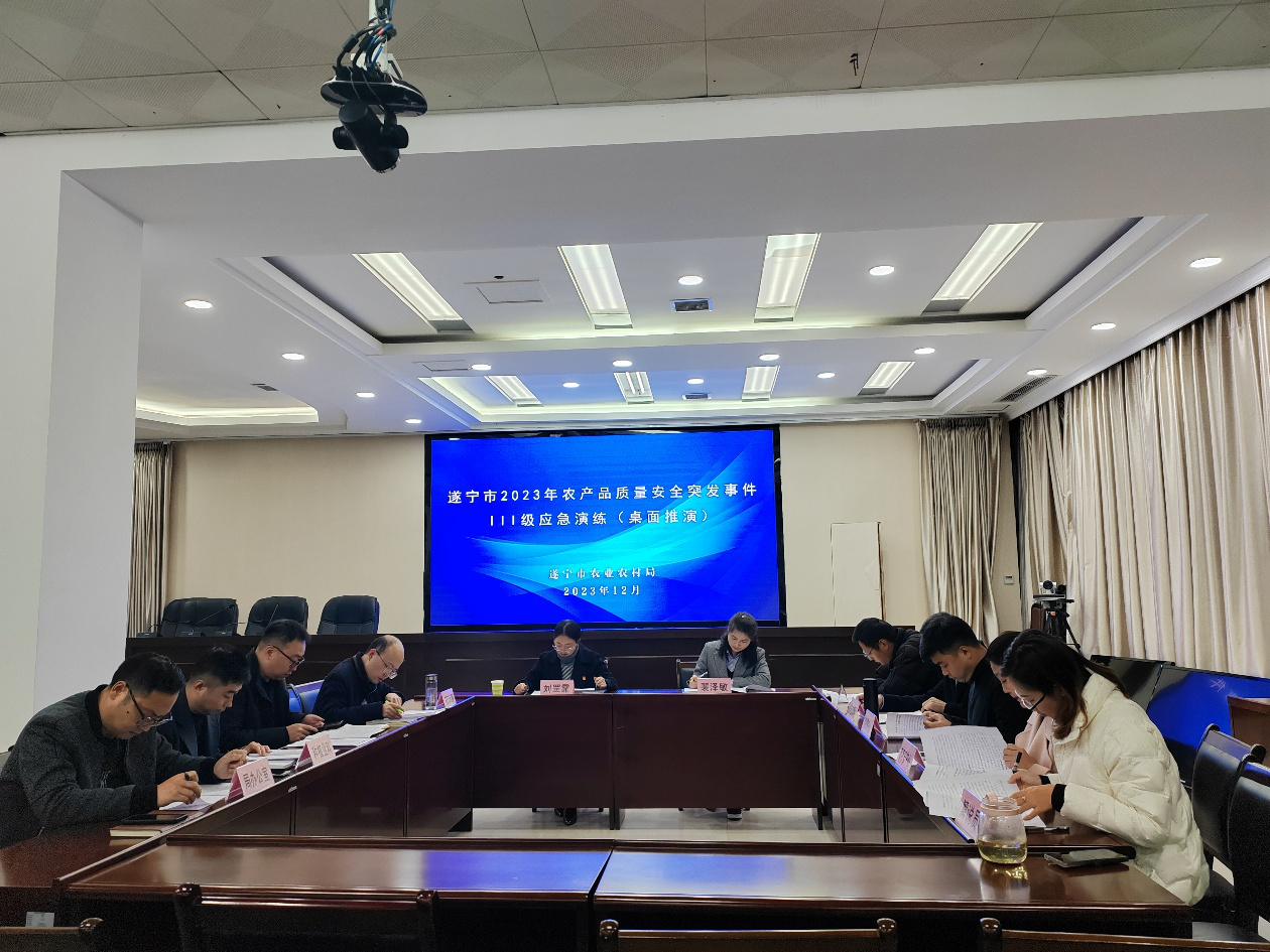为进一步提升我市农产品质量安全突发事件应急处置能力,建立健全应对农产品质量安全突发事件运行机制,12月4日下午,遂宁市农业农村局组织开展了农产品质量安全突发事件应急演练桌面推演。市农业农村局分管农产品质量的局领导,相关科站、中心负责同志,有关县(区)农业农村部门股室负责同志参加桌面推演活动。