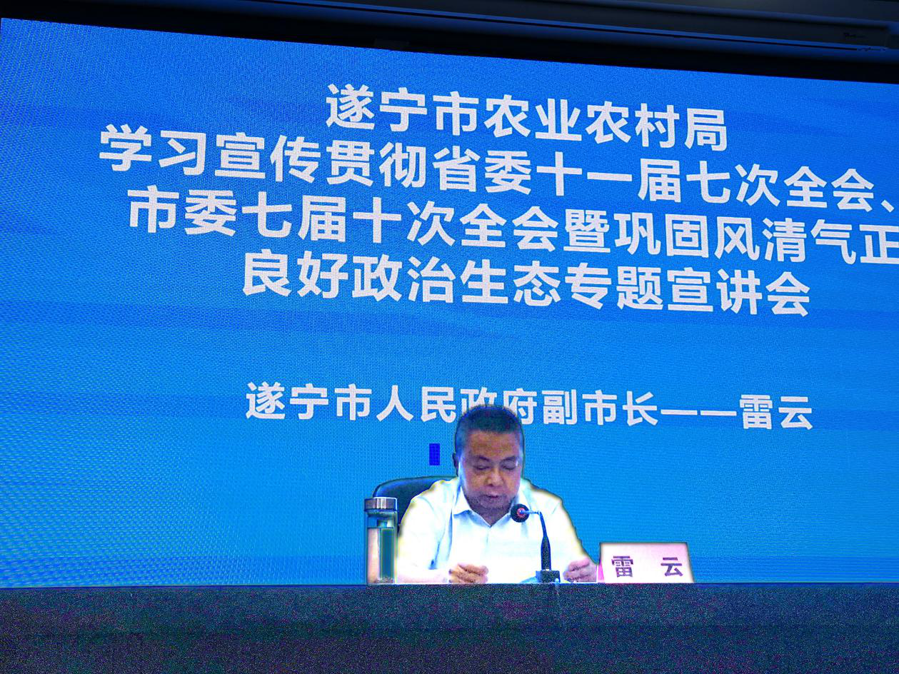 为了深入学习宣传贯彻省委十一届七次全会、市委七届十次全会精神,9月3日下午,市农业农村局邀请副市长雷云对省委十一届七次全会、市委七届十次全会精神和巩固风清气正良好政治生态进行了专题宣讲。