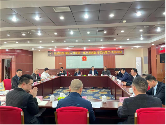 为认真贯彻落实川渝人社合作第八次联席会议精神,推动川渝毗邻地区人力资源产业高质量发展,3月9日,川渝毗邻地区人力资源一体化发展先行区共建工作座谈会议在遂宁举行。四川省人力资源和社会保障厅人力资源流动管理处处长黄杲主持会议,重庆市人力资源和社会保障局人力资源流动管理处处长王军国出席会议并讲话。重庆潼南及四川遂宁相关负责同志、人力资源产业园负责人、嘉宾40余人参加了会议。