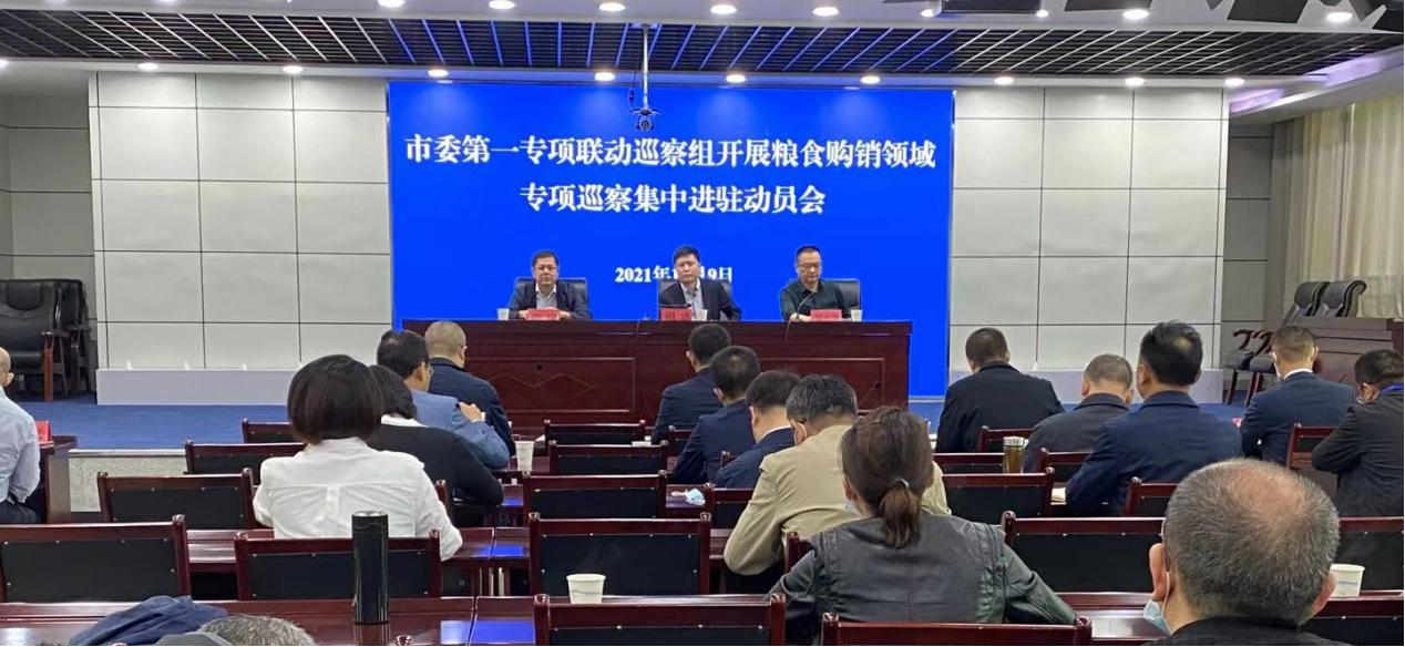 根据市委巡察工作领导小组的统一部署,2021年10月9日,市委第一专项联动巡察组巡察市发展改革委、市财政局、市国资委、市市场监管局、市国丰粮油公司等5个单位集中进驻动员会召开。会上,巡察组组长胡忠作了动员讲话,5个被巡察单位负责人分别作表态发言。