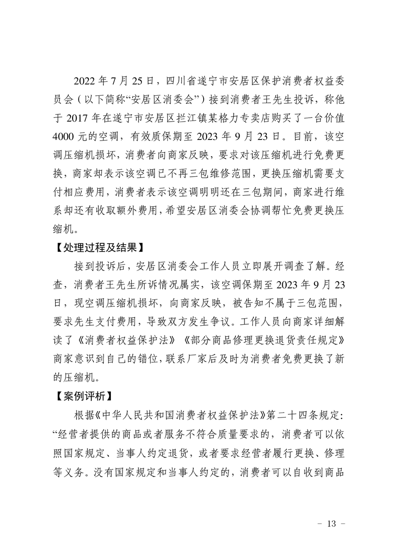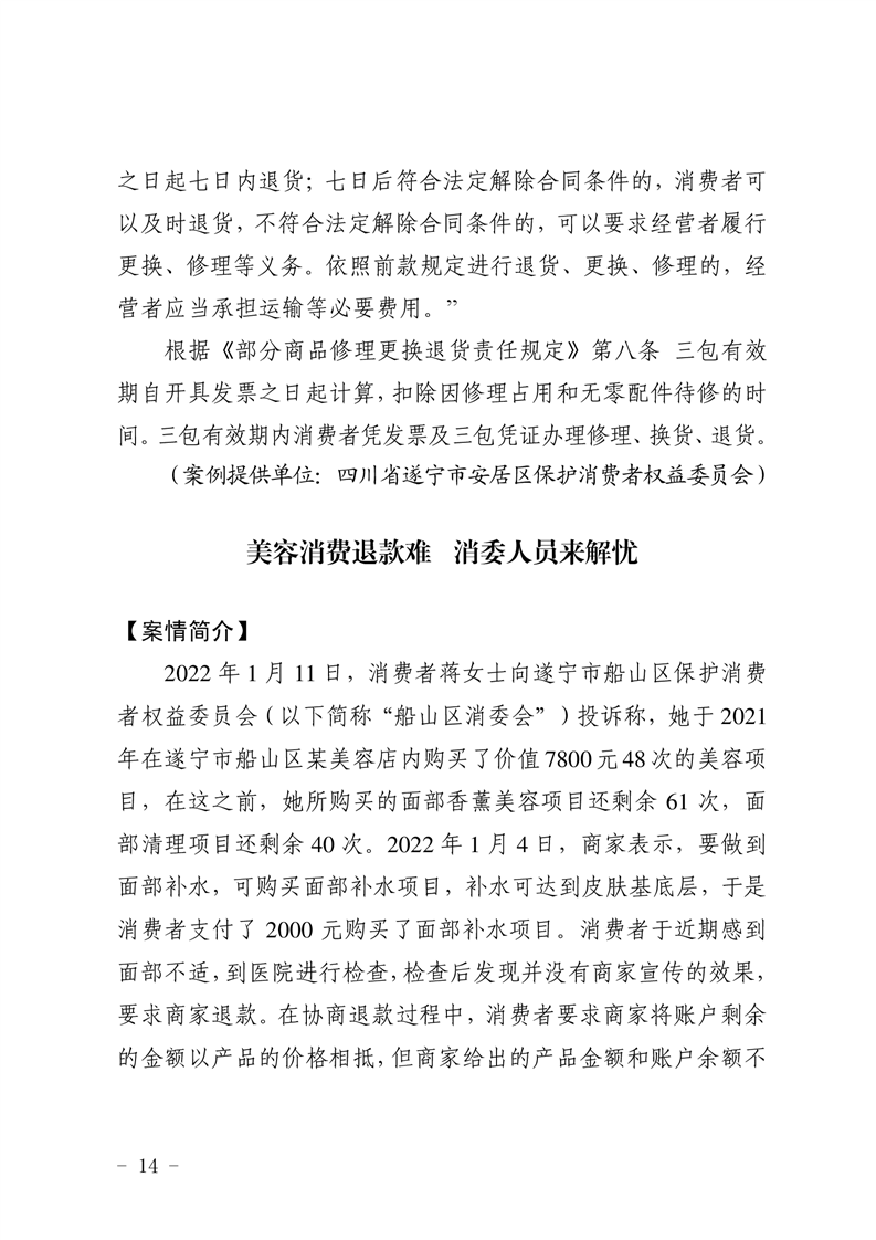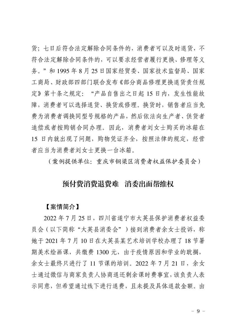 四川省遂宁市 、 重庆市铜梁区 2022 年 1-3 季度消费维权典型案例