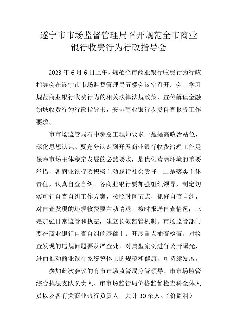 遂宁市市场监督管理局召开规范全市商业银行收费行为行政指导会