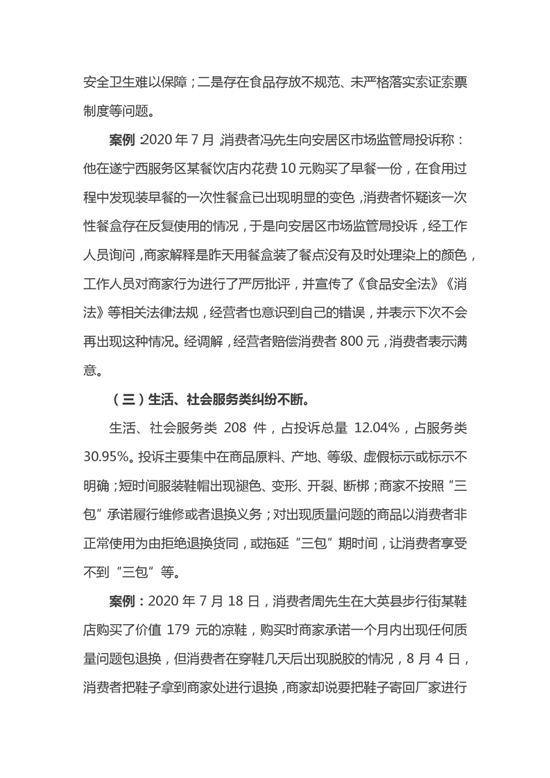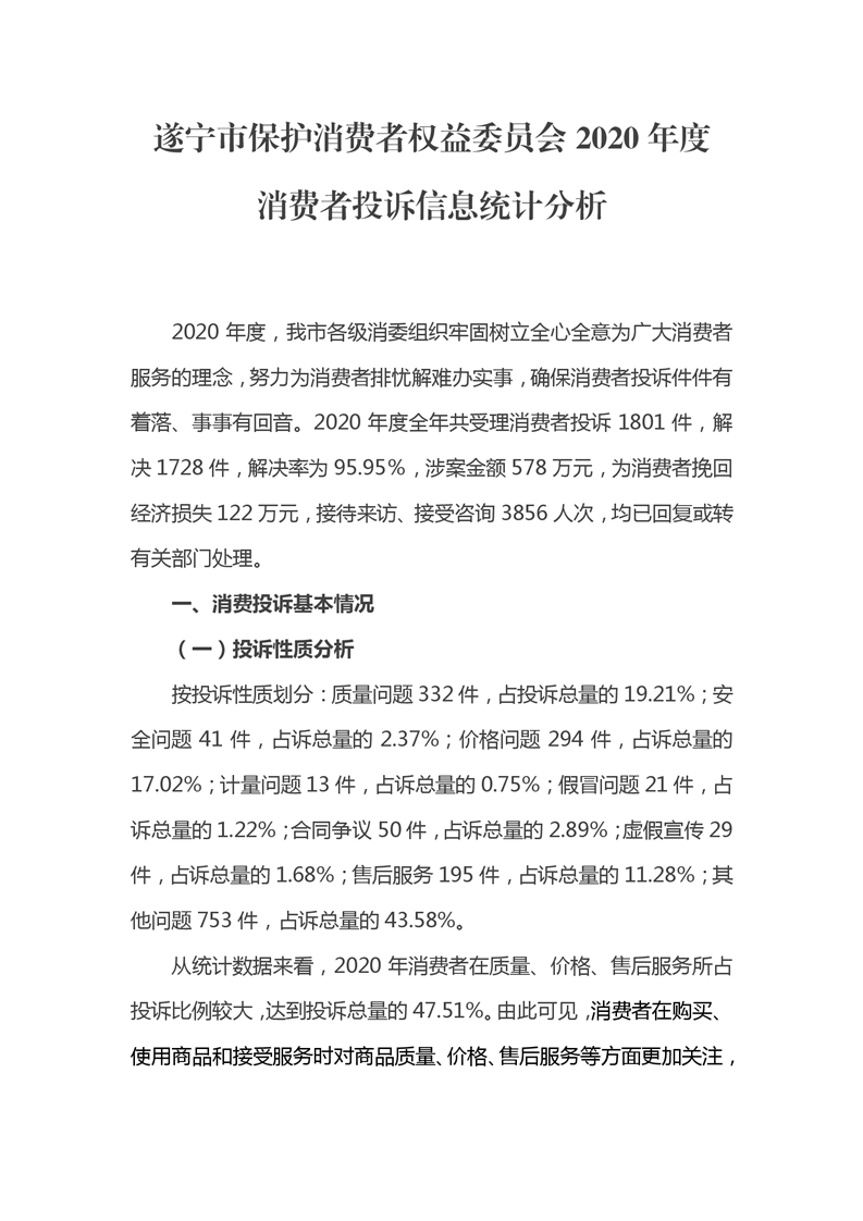 遂宁市保护消费者权益委员会2020年度消费者投诉信息统计分析