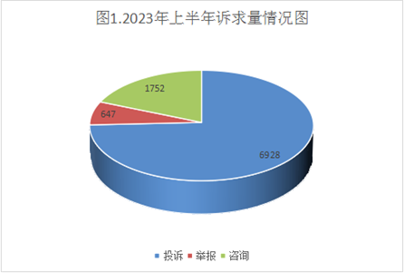 (一)问题投诉类型。上半年投诉量共6928件,问题投诉主要集中在:售后服务(1755件)、食品安全(999件)、合同(1155件)、质量(968件)、价格投诉(745件),合计占比81.1%。