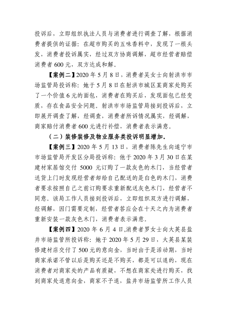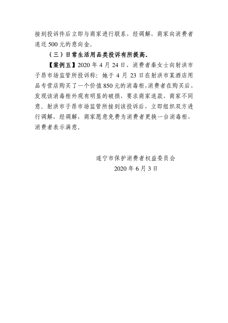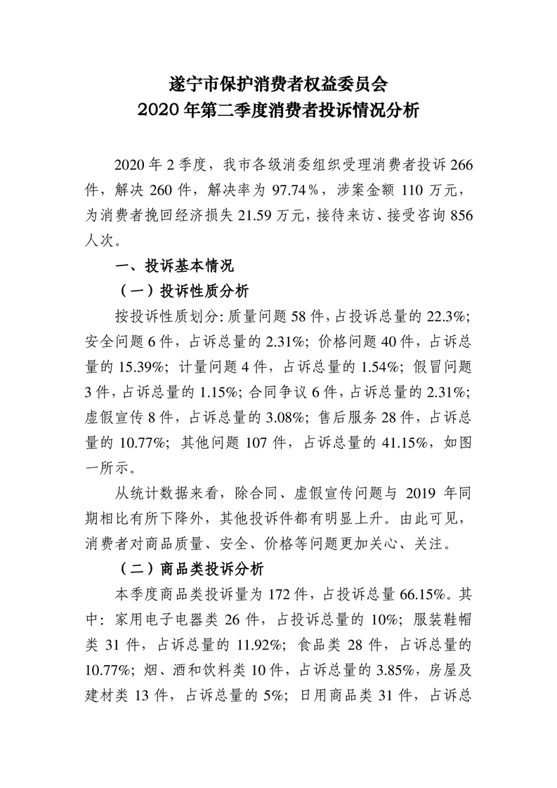 遂宁市保护消费者权益委员会2020年第二季度消费者投诉情况分析