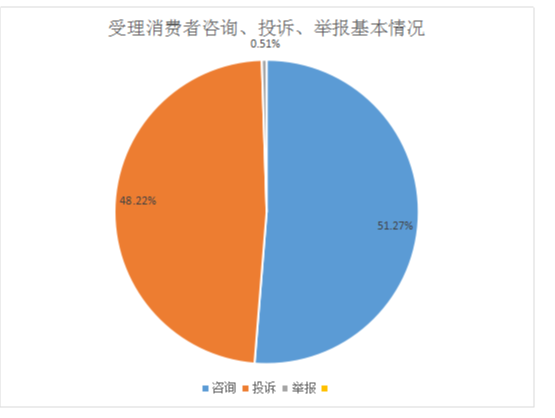 2021年上半年,遂宁市各级市场监督管理部门、消委会共受理消费者咨询、投诉、举报10661件。其中:咨询5466件,占受理总数的51.27%,同比去年下降52.96%;投诉5141起,占受理总数的48.22%,同比去年上升48.50%;举报54件,占受理总数的0.51%,同比去年下降77.11%。已处理投诉举报5153件,处理率100%。