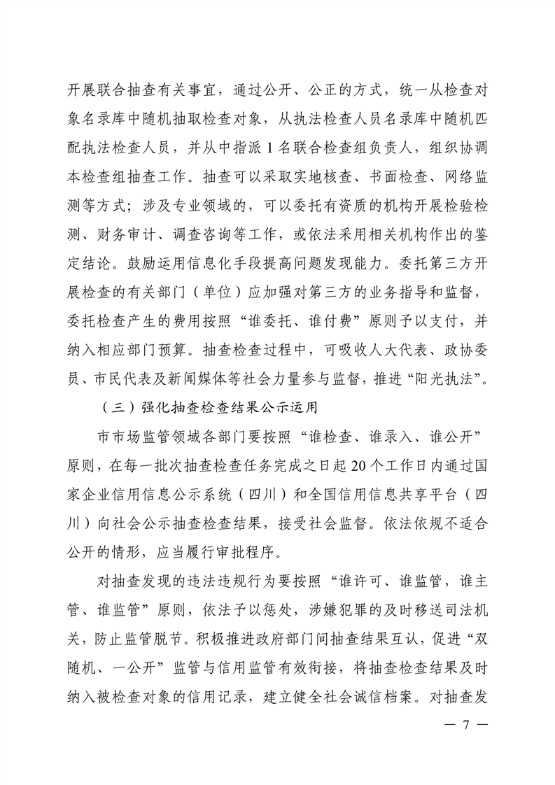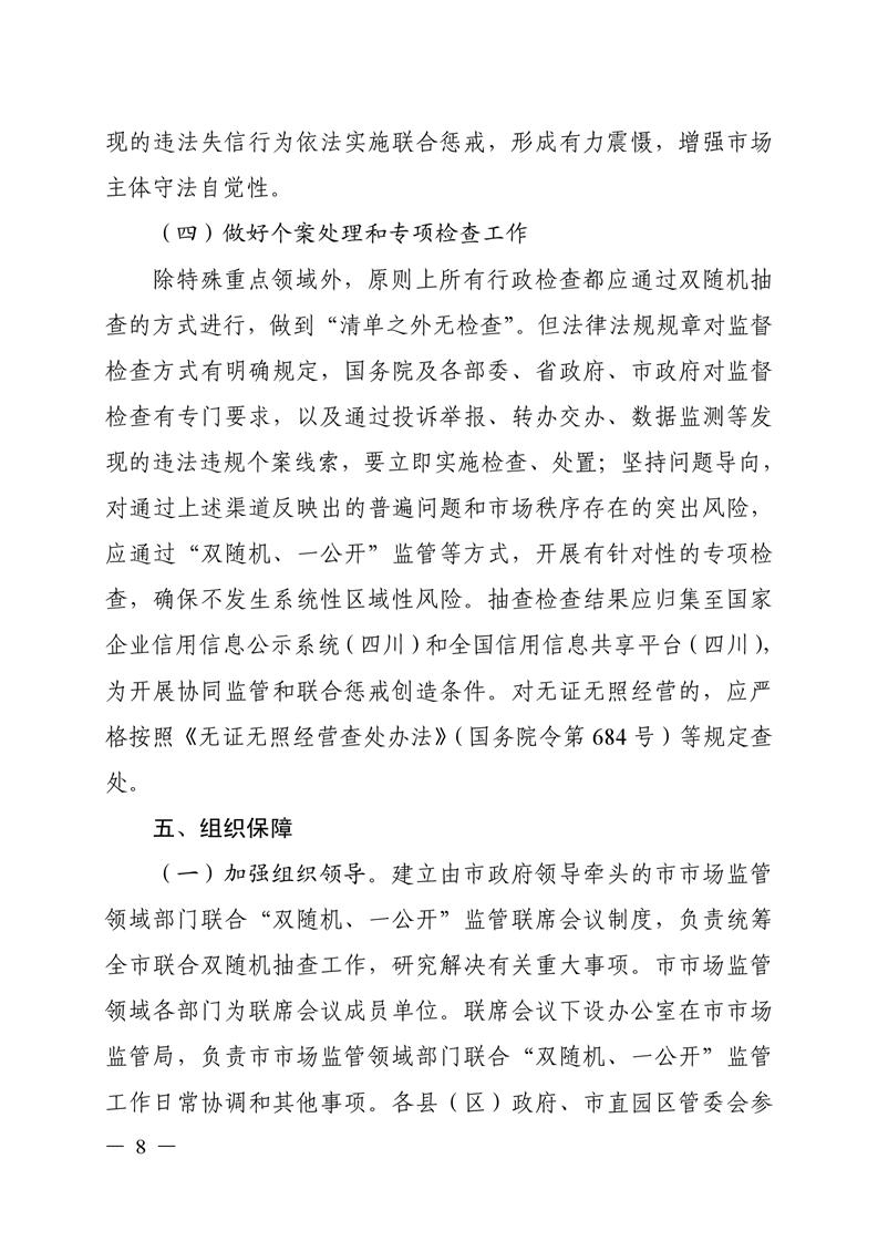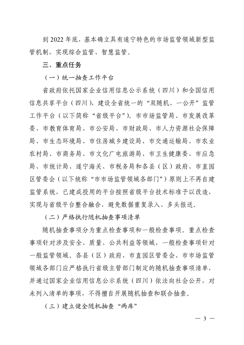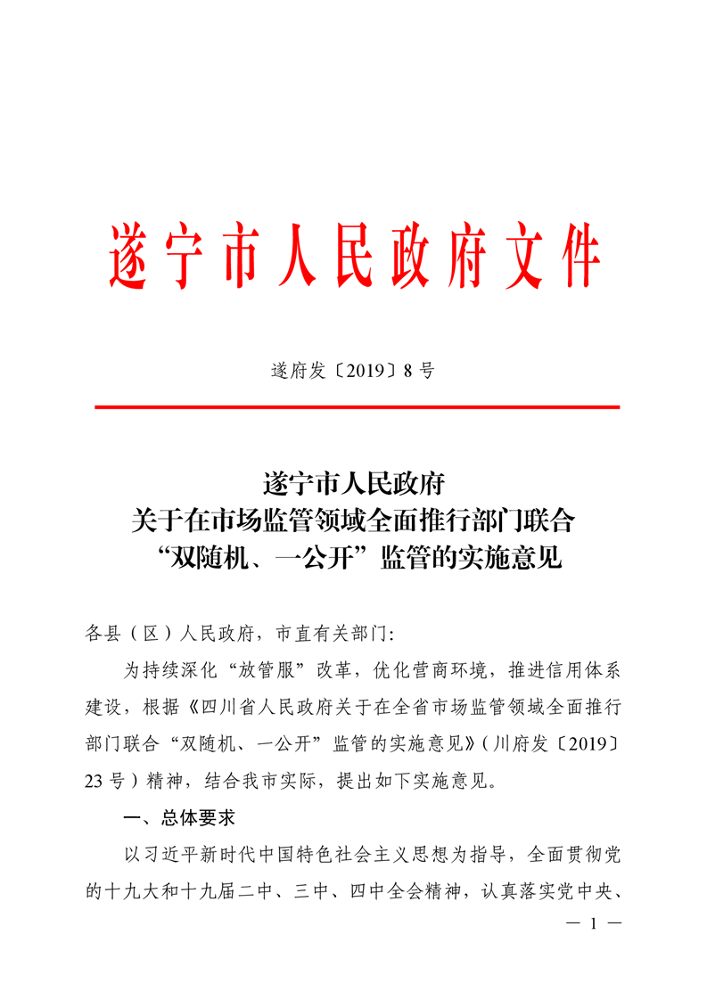 遂宁市人民政府 关于在市场监管领域全面推行部门联合“双随机、一公开”监管的实施意见(遂府发〔2019〕8号)