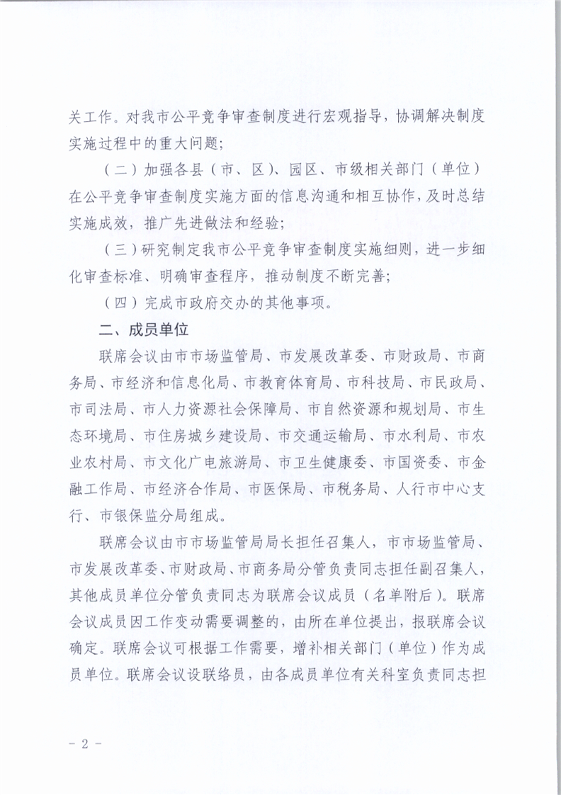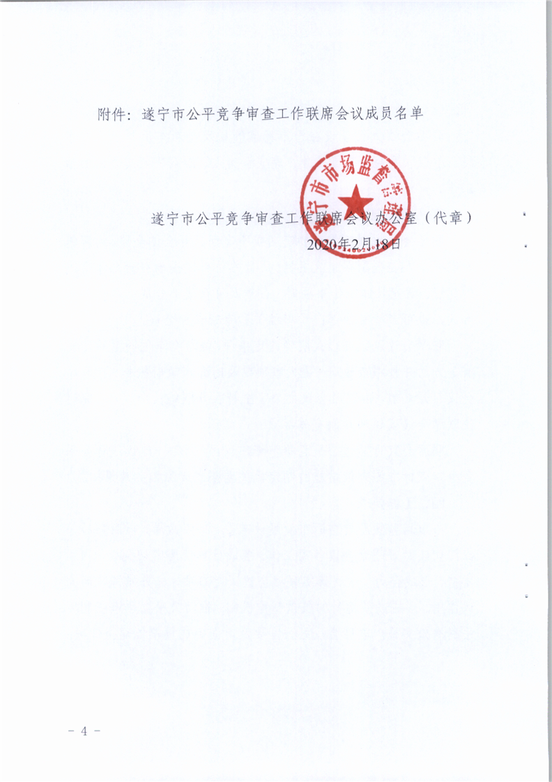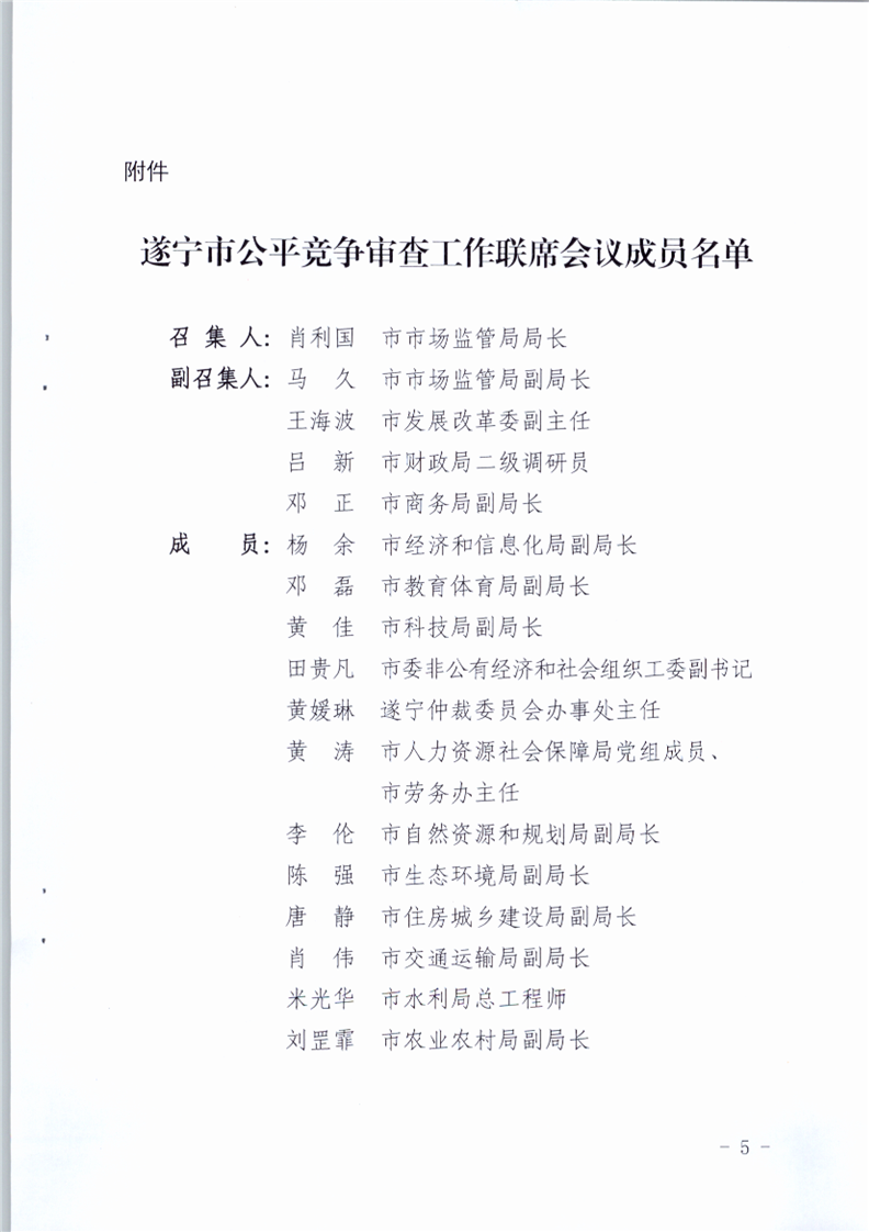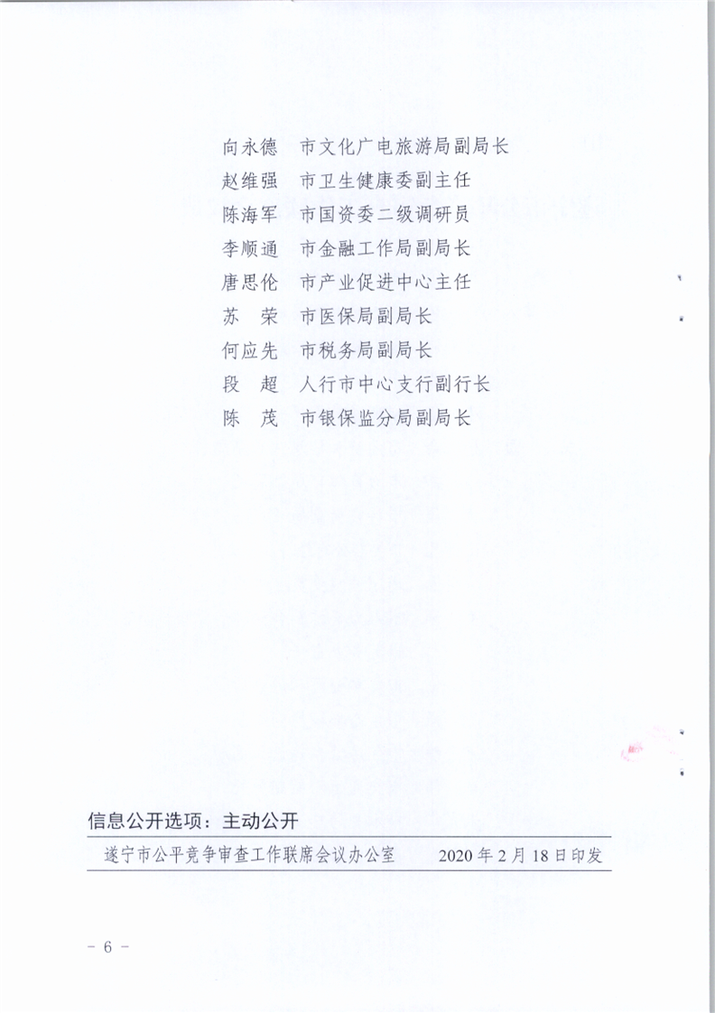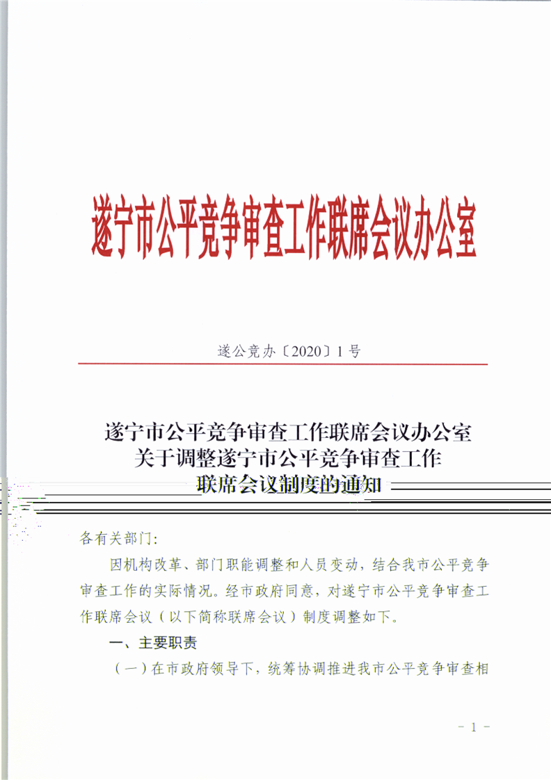 遂宁市公平竞争审查工作联席会议办公室 关于调整遂宁市公平竞争审查工作联席会议制度的通知(遂公竞办〔2020〕1号)