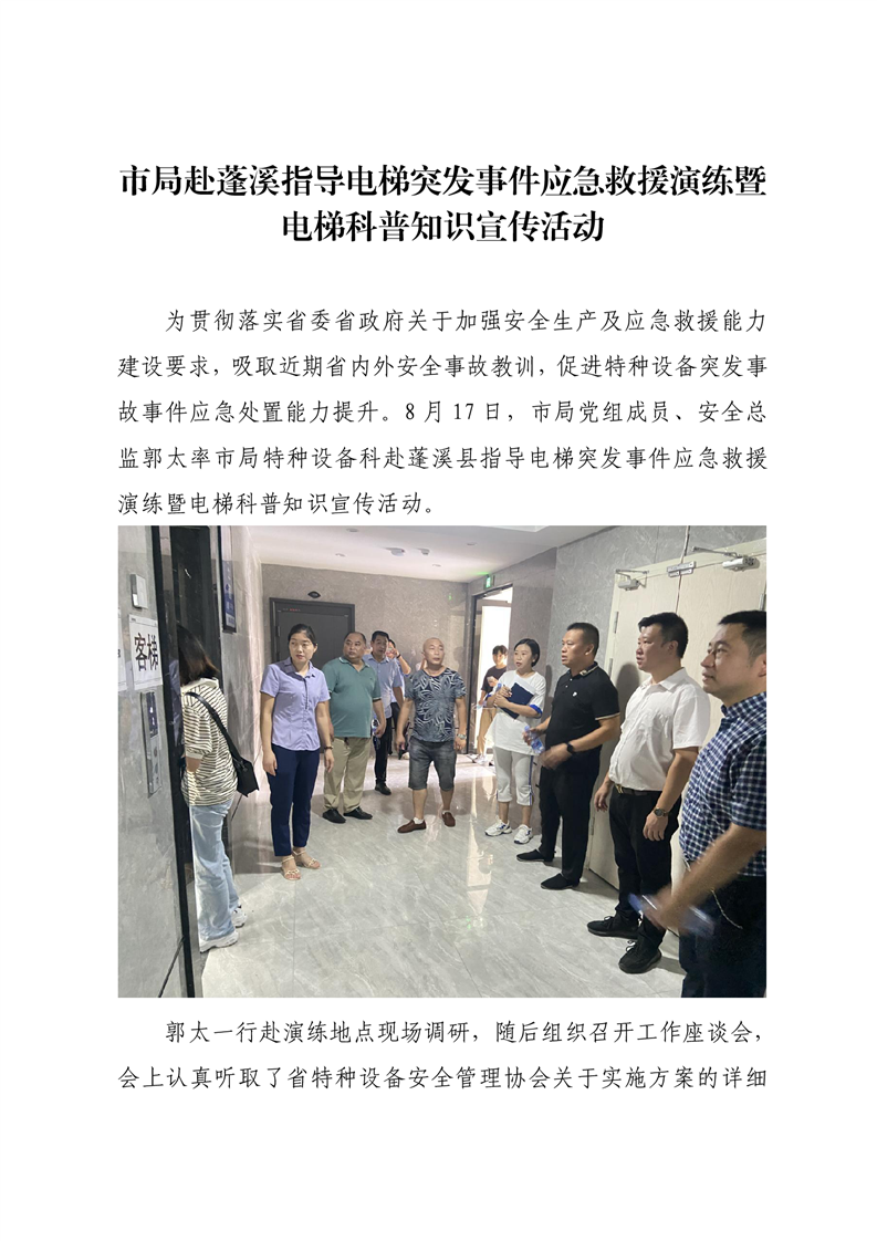市局赴蓬溪指导电梯突发事件应急救援演练暨电梯科普知识宣传活动