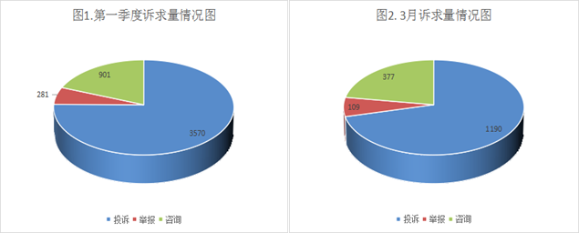 2023年3月,市市场监管局依托全国12315平台,共接收消费者诉求1676件,已办结1529件,诉求环比上升13.09%。其中,投诉1190件,环比上升8.58%,占诉求总数的71%;举报109件,环比上升29.76%,占诉求总数的6.5%;咨询377件,环比上升24.83%,占诉求总数的22.5%;共为消费者挽回经济损失38万元。