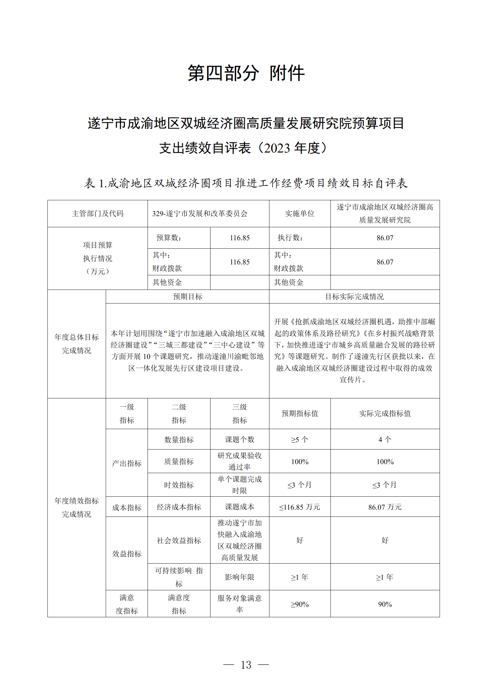 2023年度遂宁市成渝地区双城经济圈高质量发展研究院单位决算