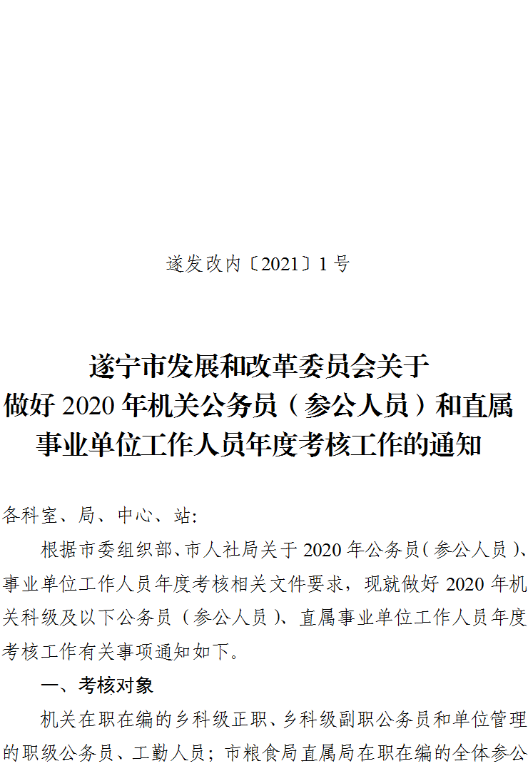 遂宁市发展和改革委员会关于做好2020年机关公务员(参公人员)和直属事业单位工作人员年度考核工作的通知