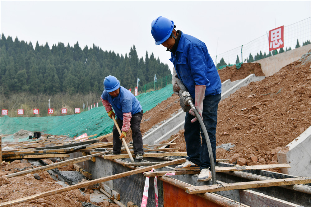 近日,位于安居区聚贤镇的220千伏同盟变电站新建工程现场人头攒动,焊接、浇筑、装卸……来自国网遂宁供电公司的50余名工作人员和10余辆大型机械协同配合,正加快推进配电楼龙骨安装、GIS设备基础浇筑等工作,确保项目按期建成投运。
