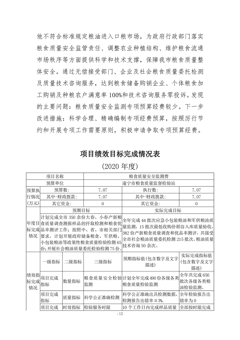 2020年度四川省遂宁市粮食质量监督检验站部门决算