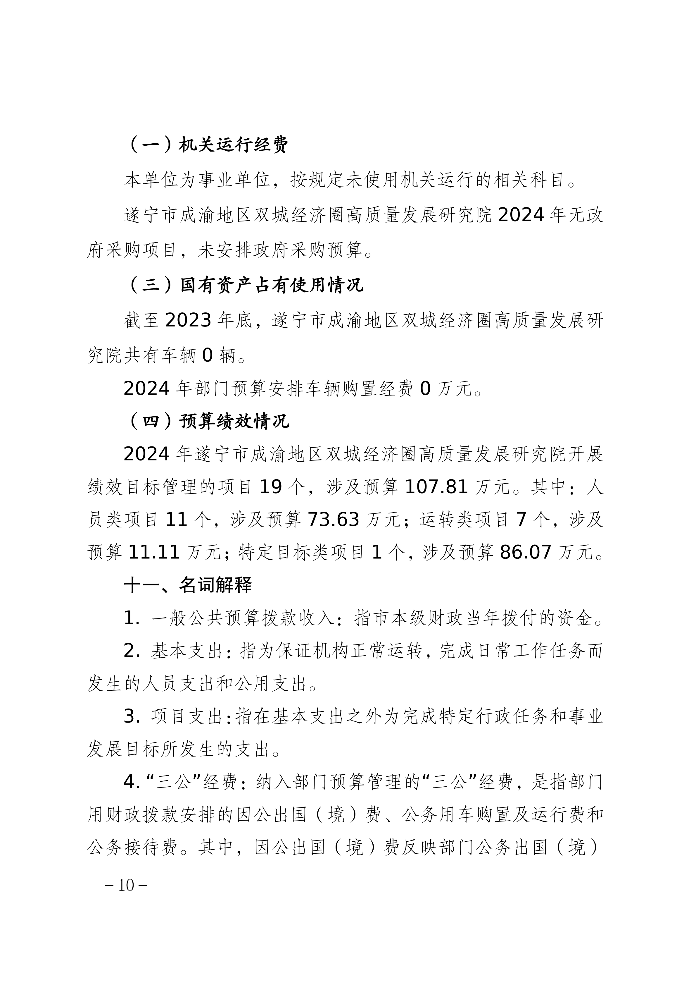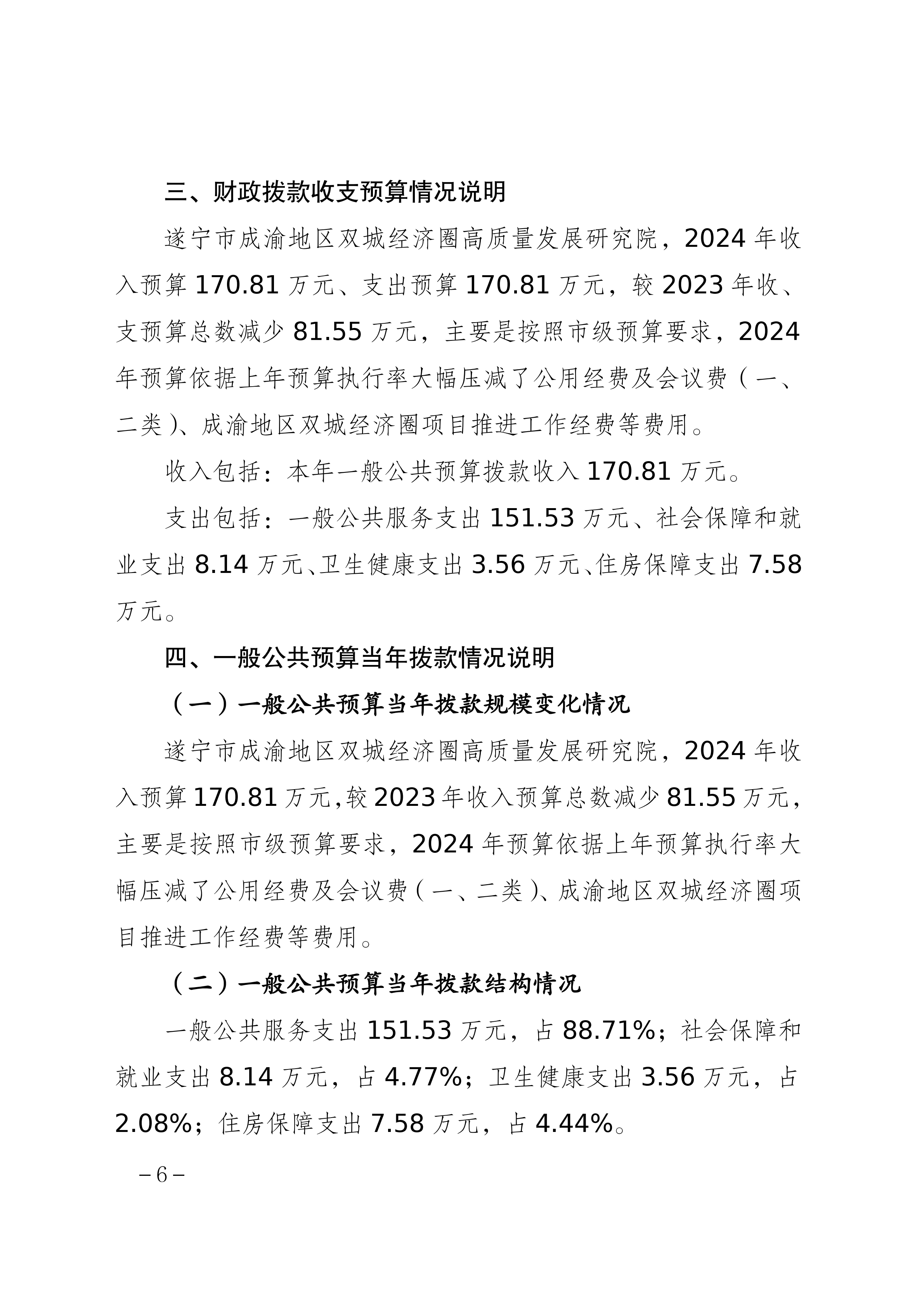 遂宁市成渝地区双城经济圈高质量发展研究院2024年单位预算