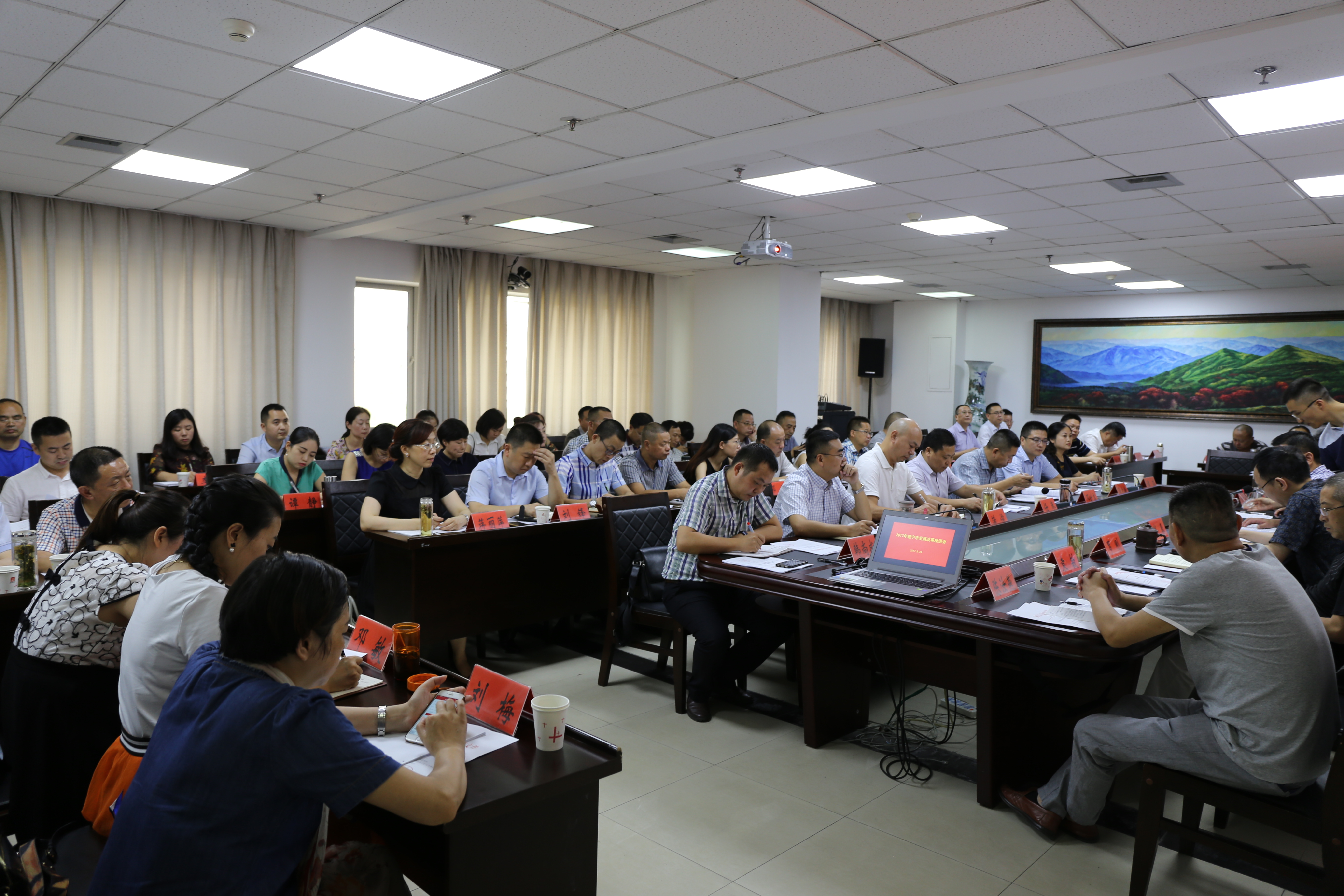 8月24日,市发改委组织召开了2017年全市发展改革系统座谈会。会议由市发改委党组成员、副主任李海同志主持,委党组书记、主任邓斌同志总结上半年发展和改革工作,安排部署下半年重点工作。各区县、园区发改局党组成员及市发改委各科室负责人参加了会议。