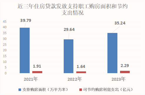 2023年,全市发放的住房公积金贷款可支持职工购建房35.24万平方米,可节约缴存职工购房利息支出2.29亿元,减轻缴存职工购房经济压力。