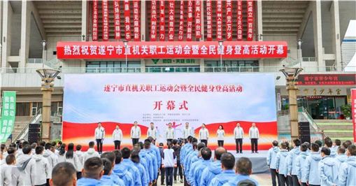 4月25日,遂宁市直机关职工运动会暨全民健身登高活动开幕式在船山体育馆广场举行。市公积金中心职工代表队参加了开幕式及登高活动。