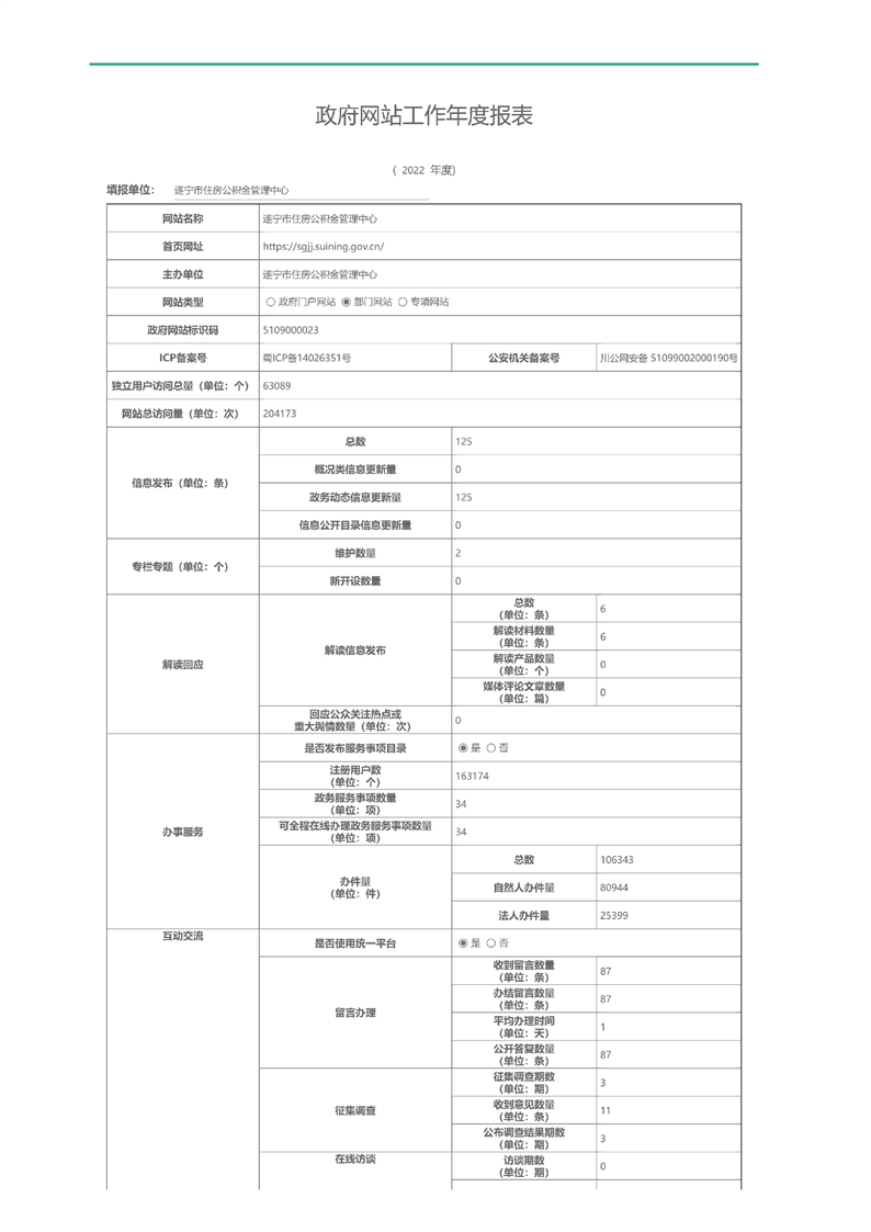 遂宁市住房公积金管理中心网站工作年度报表(2022年度)