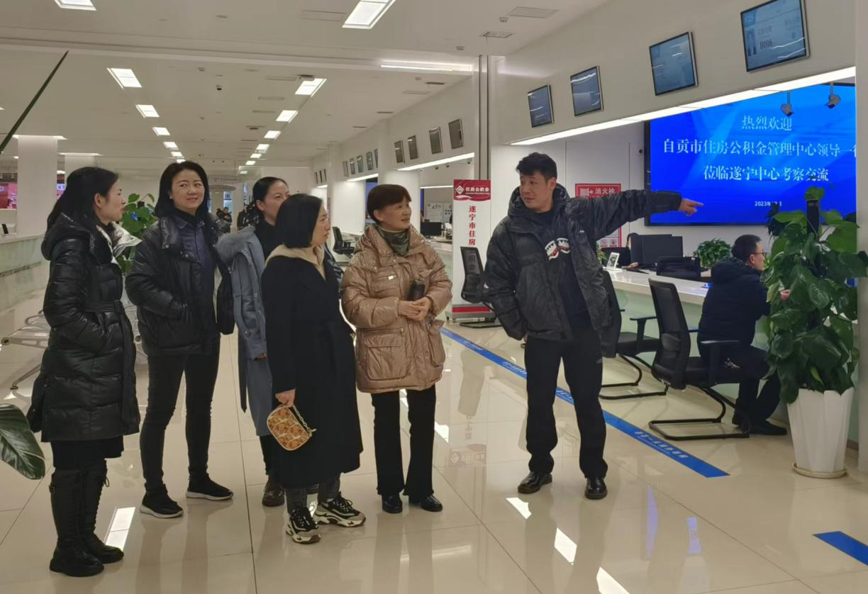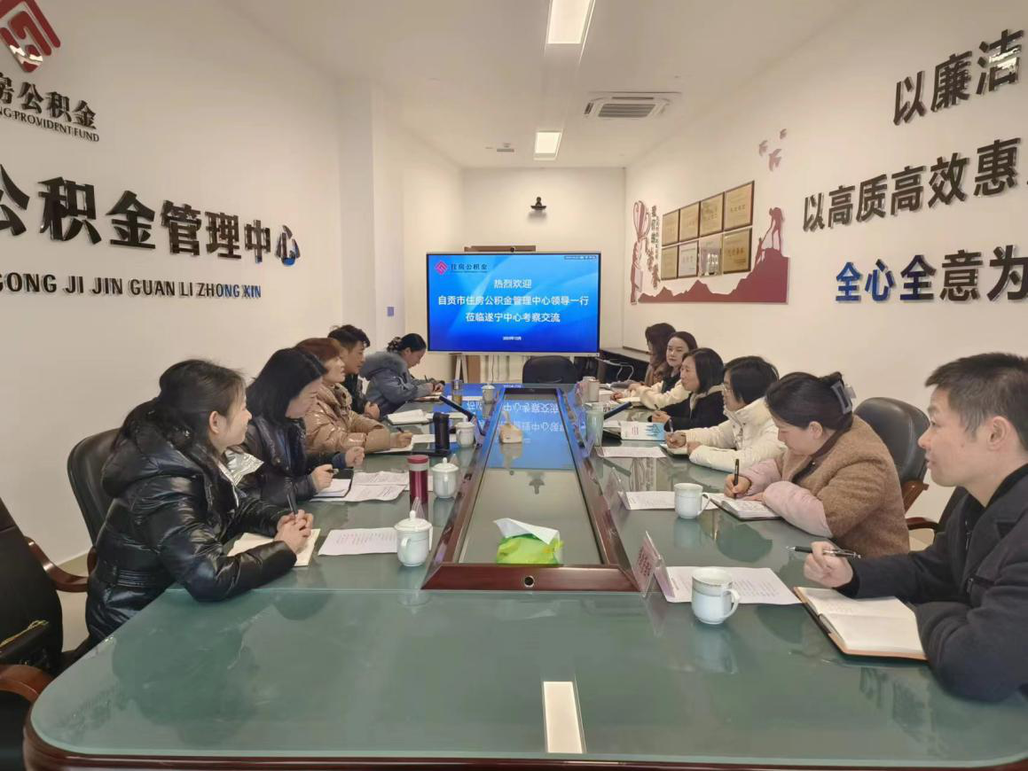 12月20日,自贡市住房公积金中心副主任黄德华一行来中心考察交流家庭互助政策、建制扩面工作、稽核审计等情况。中心副主任郭晓华、各科室负责人陪同考察。