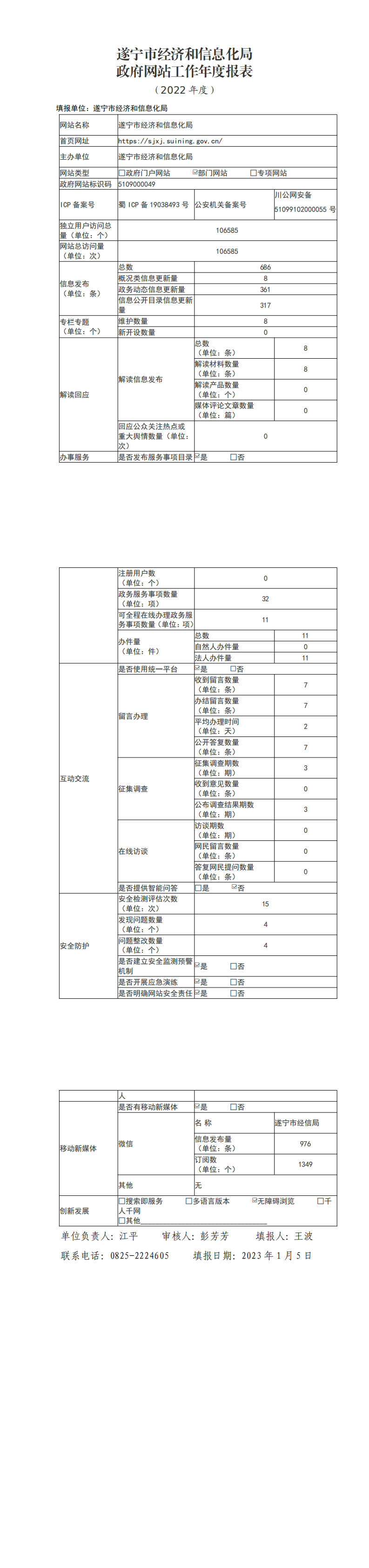 2022年遂宁市经济和信息化局政府网站工作年度报表