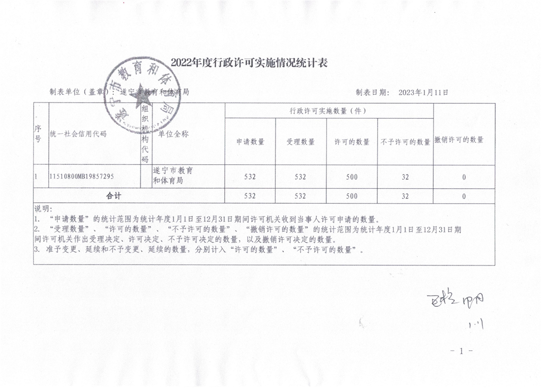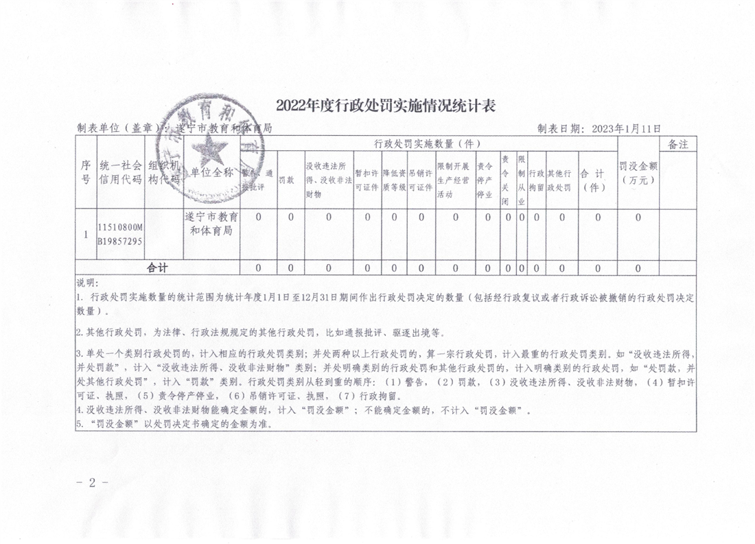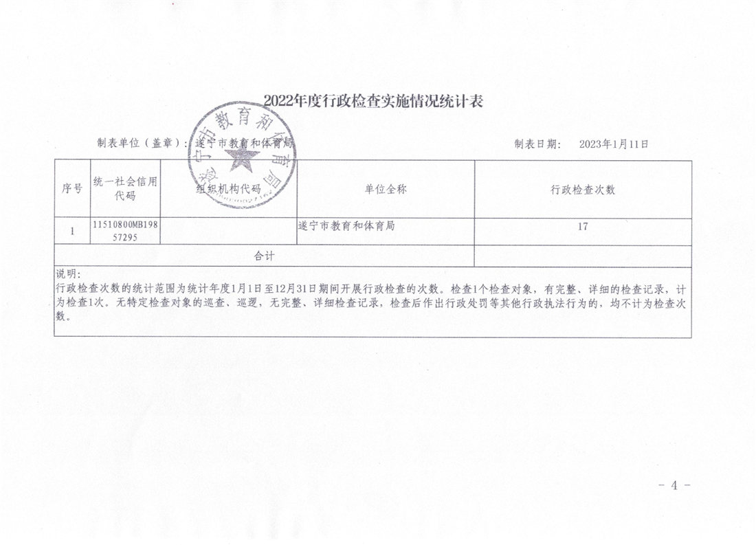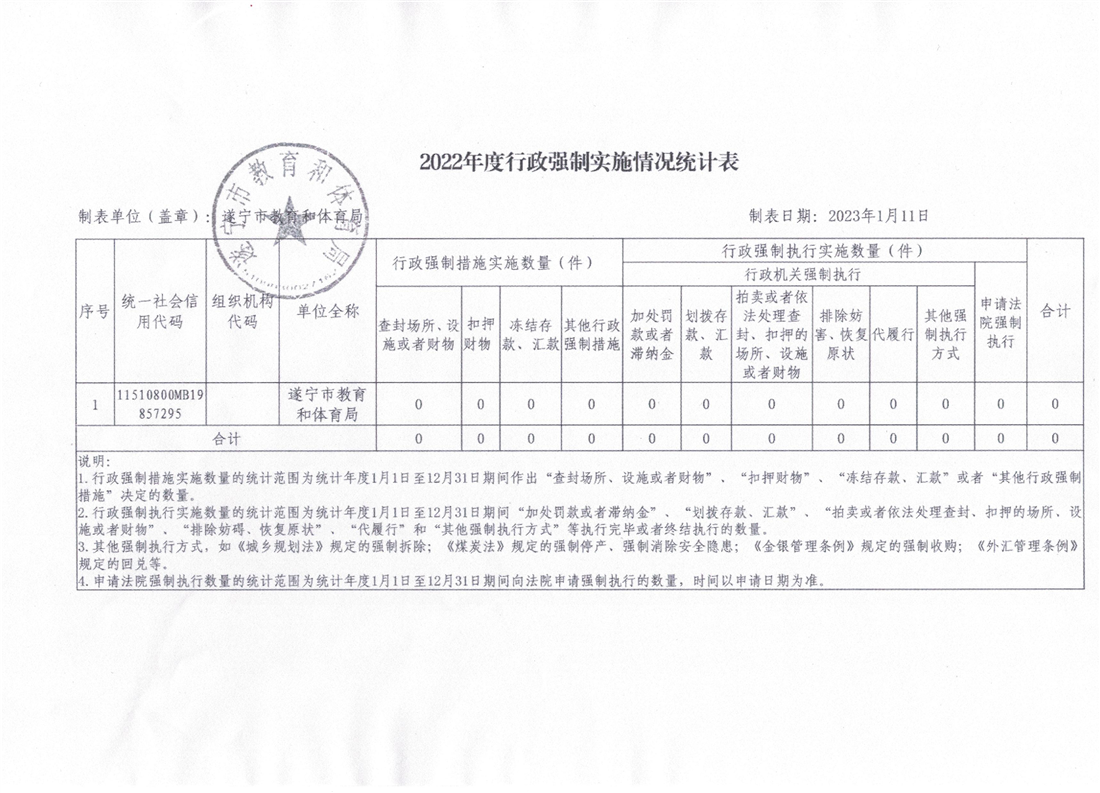 遂宁市教育和体育局2022年度行政执法和行政执法监督情况公示