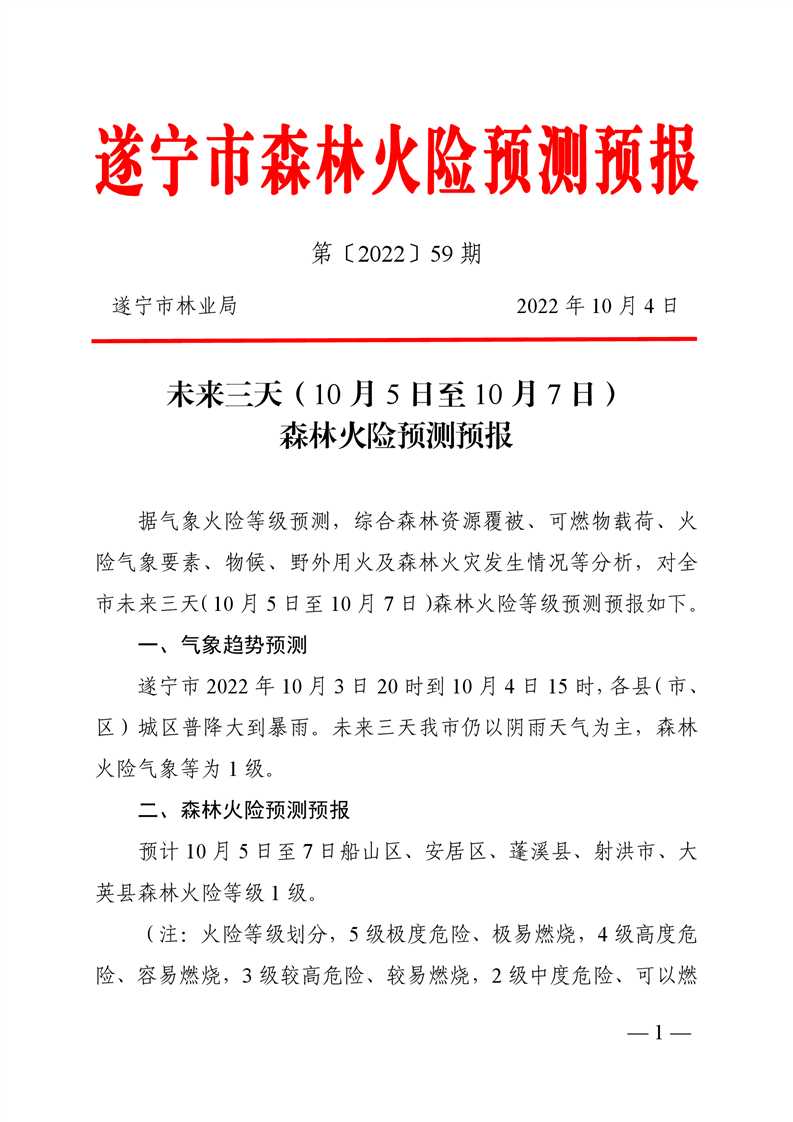 遂宁市森林火险预测预报(59期)