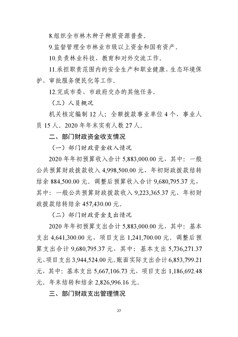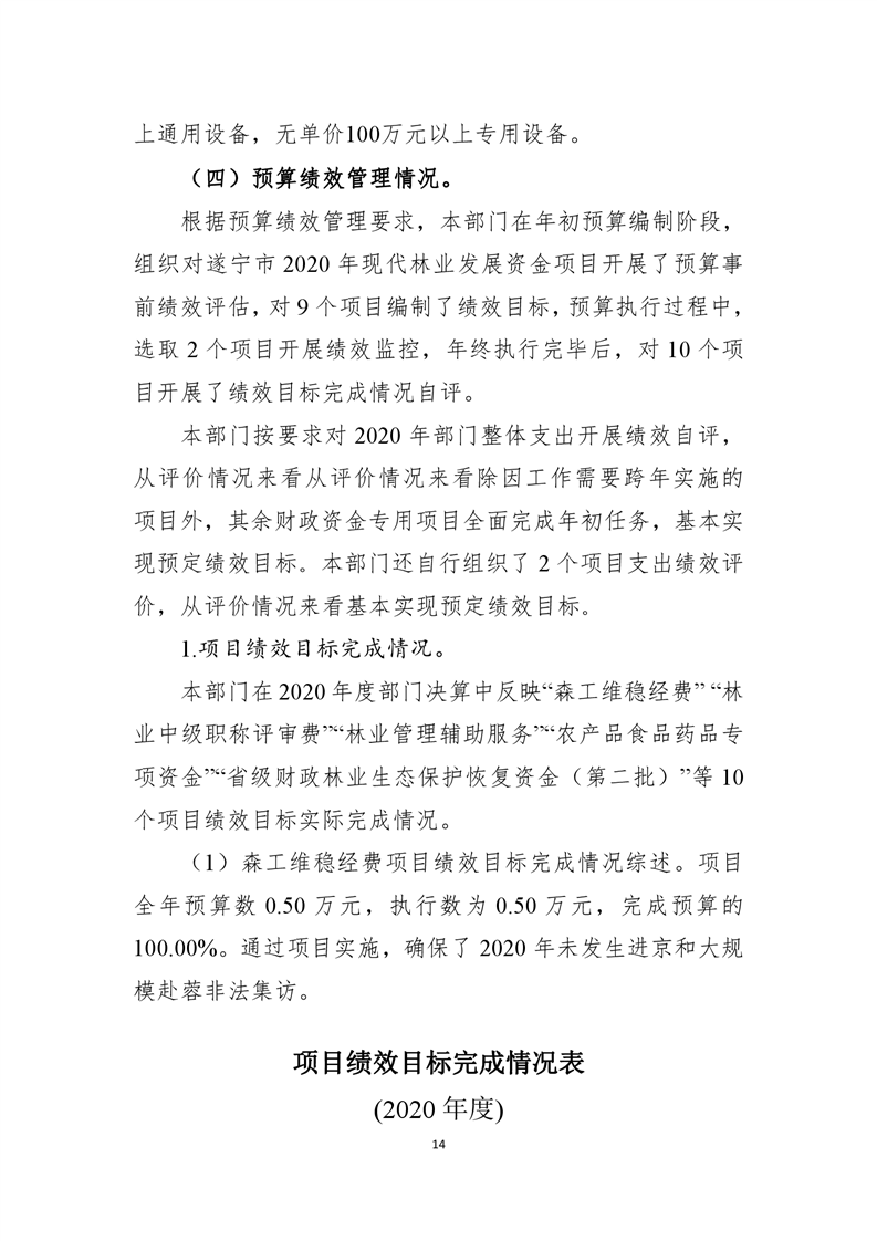 遂宁市林业局2020年度部门决算
