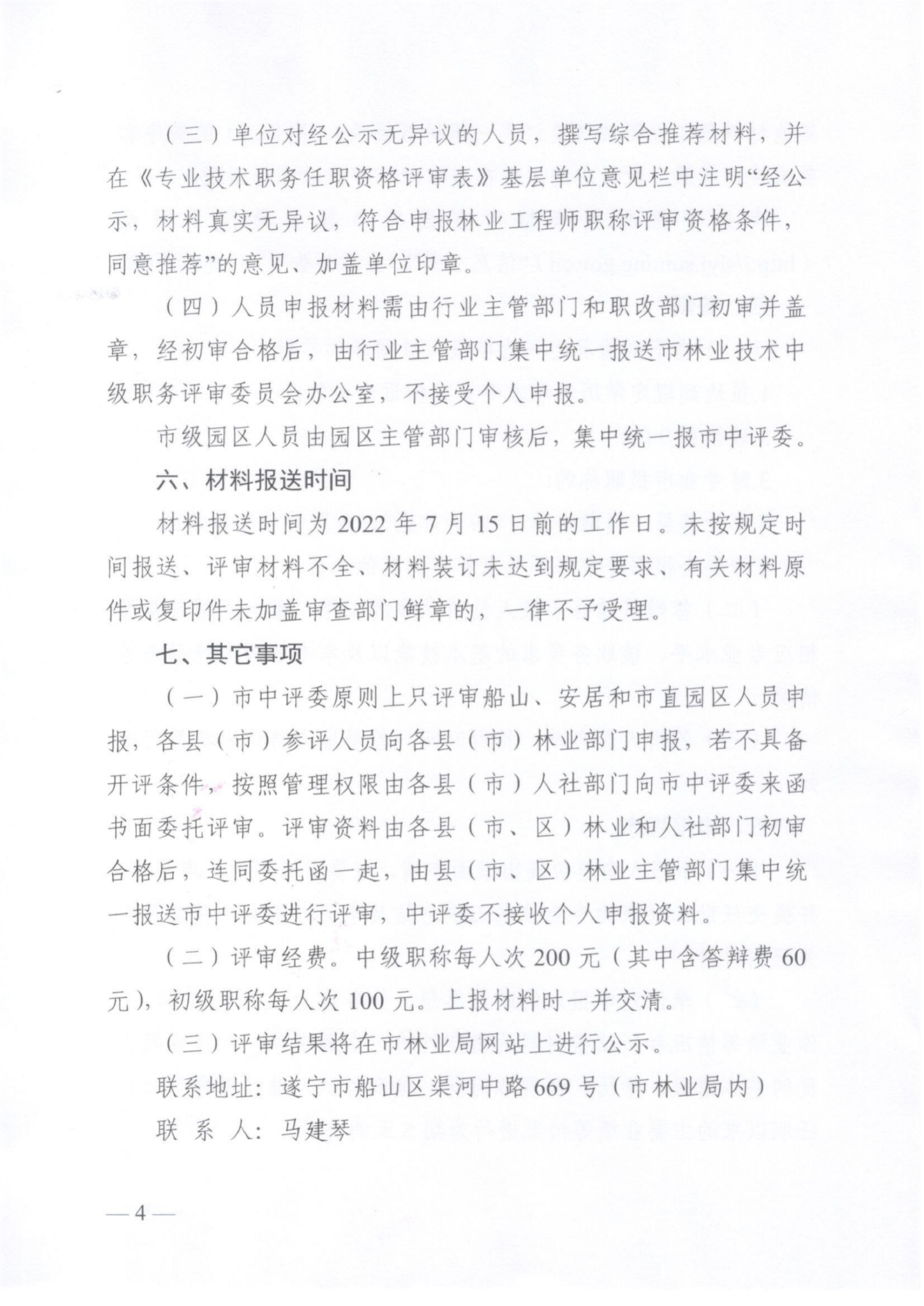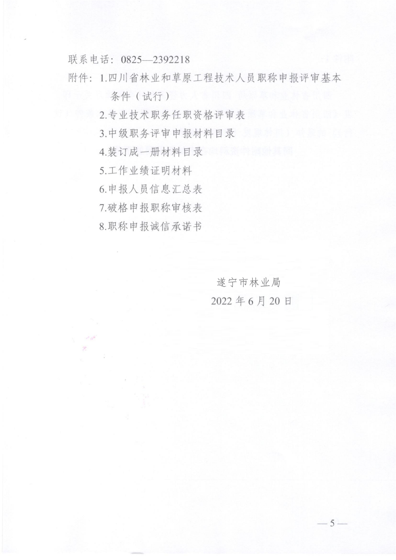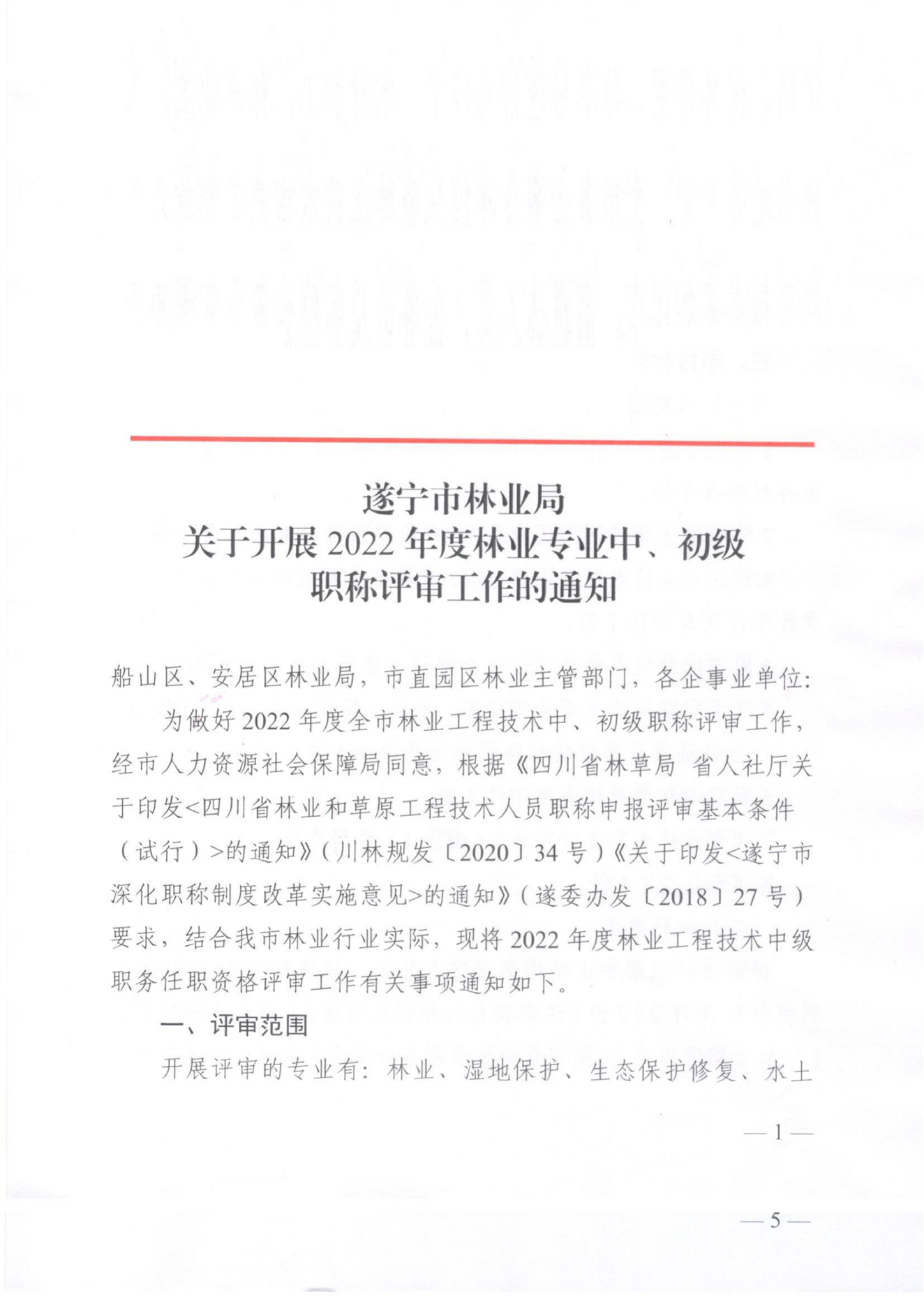 遂宁市林业局 关于开展2022年度林业专业中、初级 职称评审工作的通知
