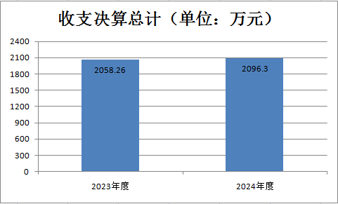 2024年度收、支总计均为2096.30万元。与2023年度相比,收、支总计各增加38.04万元,增长1.85%。主要变动原因一是行政人员、事业人员退休3人,减少了相关支出;二是2024年下达的中省项目资金较2023年有所增长。