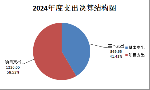 2024年度本年支出合计2096.30万元,其中:基本支出869.65万元,占41.48%;项目支出1226.65万元,占58.52%。