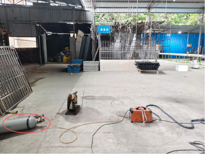 问题隐患二:氩气瓶倾倒放置,未采取保护措施