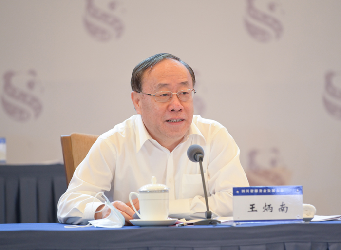 王炳南在讲话中代表商务部对大会的召开表示祝贺。他说,在全国疫情防控取得重大战略成果、服务业和服务贸易加快复苏的背景下,四川省高规格举办服务业发展大会,彰显了四川省委省政府坚决贯彻落实中央决策部署、统筹疫情防控和经济社会发展的坚定决心,对推动全国服务业高质量发展具有重要意义。商务部将一如既往支持四川服务业高质量发展,支持四川以消费升级为重点,推动商贸、物流、会展、餐饮、家政等服务业提质增效;以改革开放为动力,加快服务业转型升级,努力将"四川服务"打造成为服务业高水平开放的新高地;以融合创新为引领,加快推动服务业与先进制造业、现代农业融合发展,加快业态模式创新升级,提升全产业链价值。